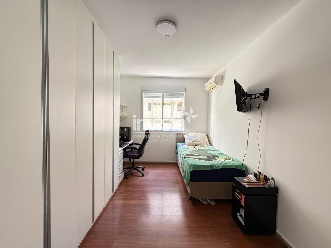 São 2 dormitórios amplos, sendo 1 suíte, além de banheiro social, sala para 2 ambientes, cozinha totalmente reformada e moderna, área de serviço e dependência completa.