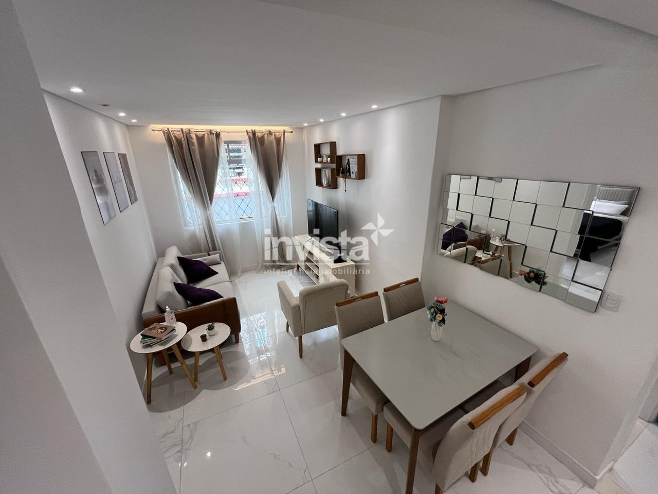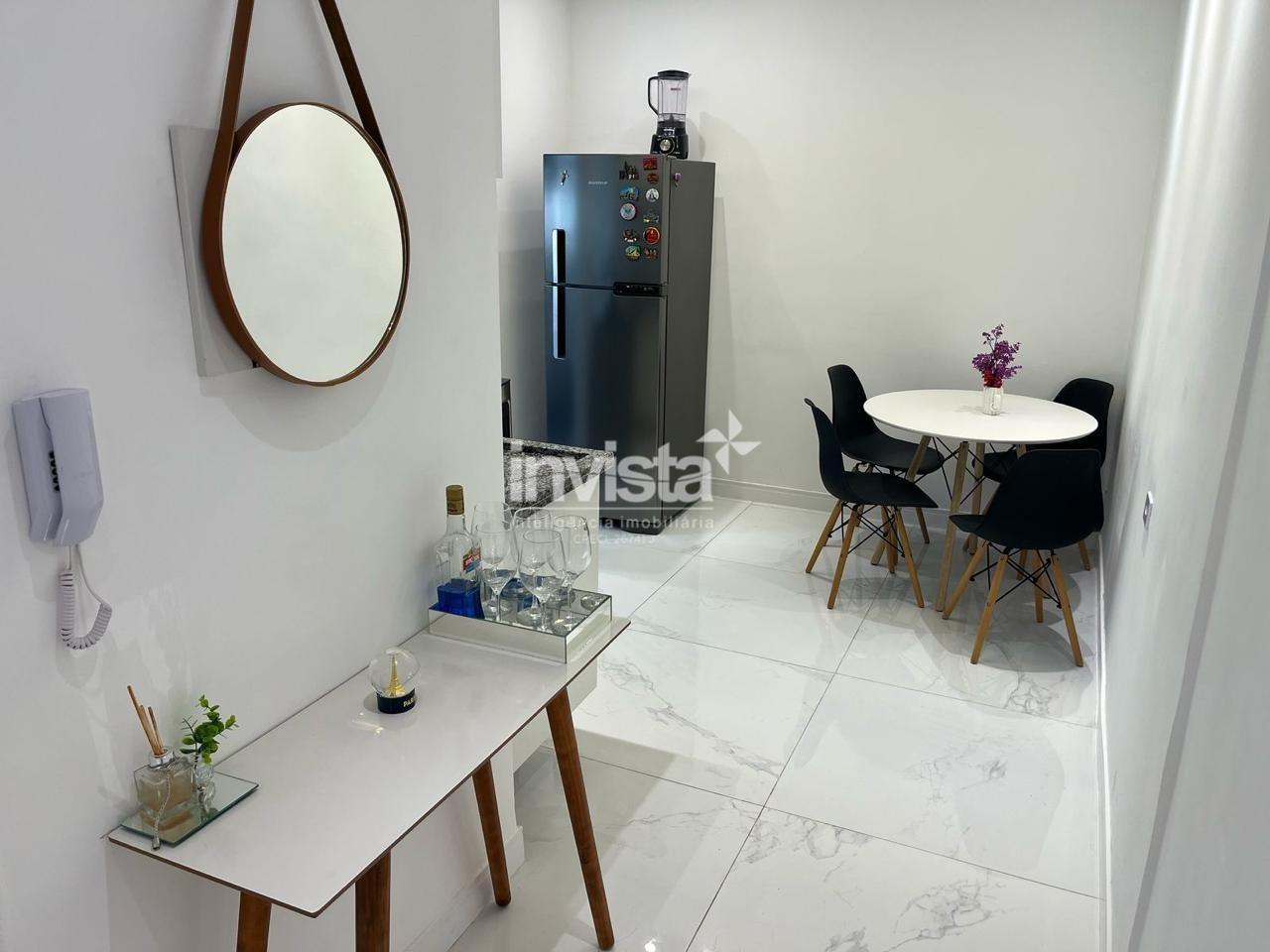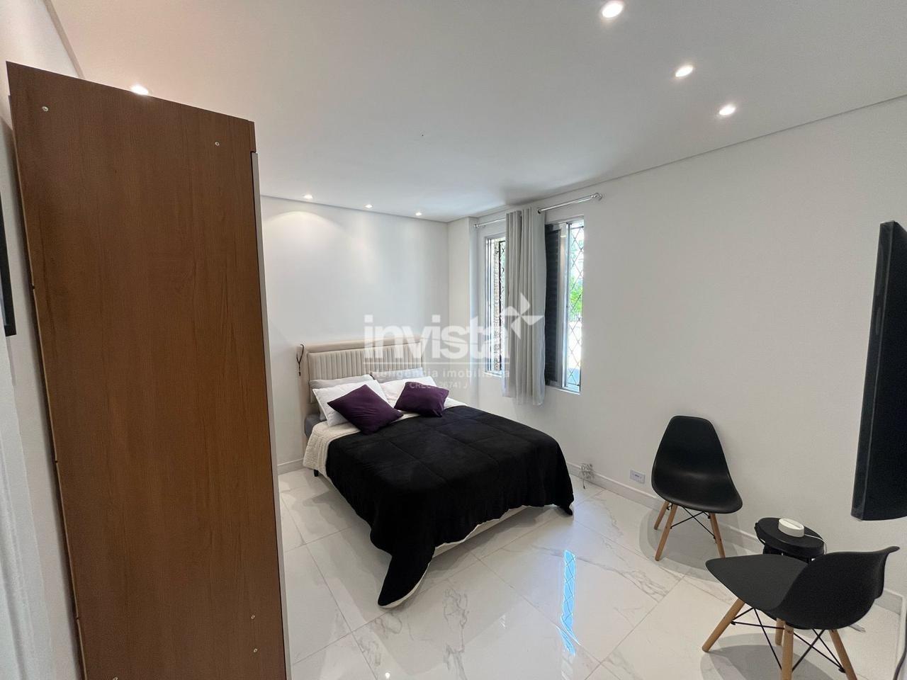 Apartamento térreo totalmente reformado, mobiliado e pronto para morar, localizado a apenas uma quadra da praia, no coração do bairro Boqueirão, em Santos.