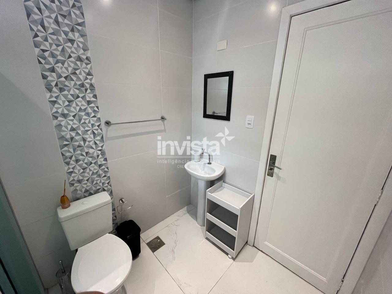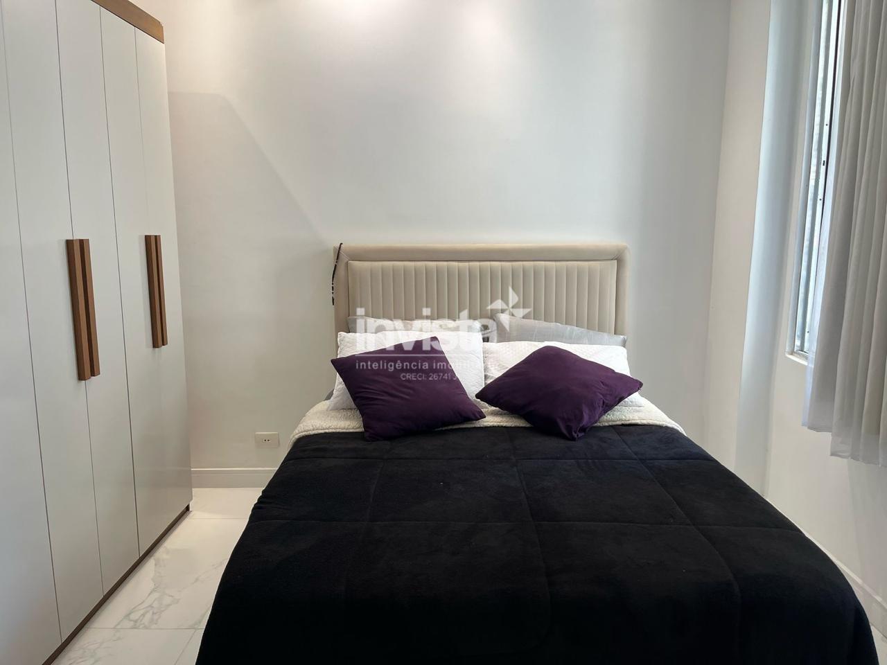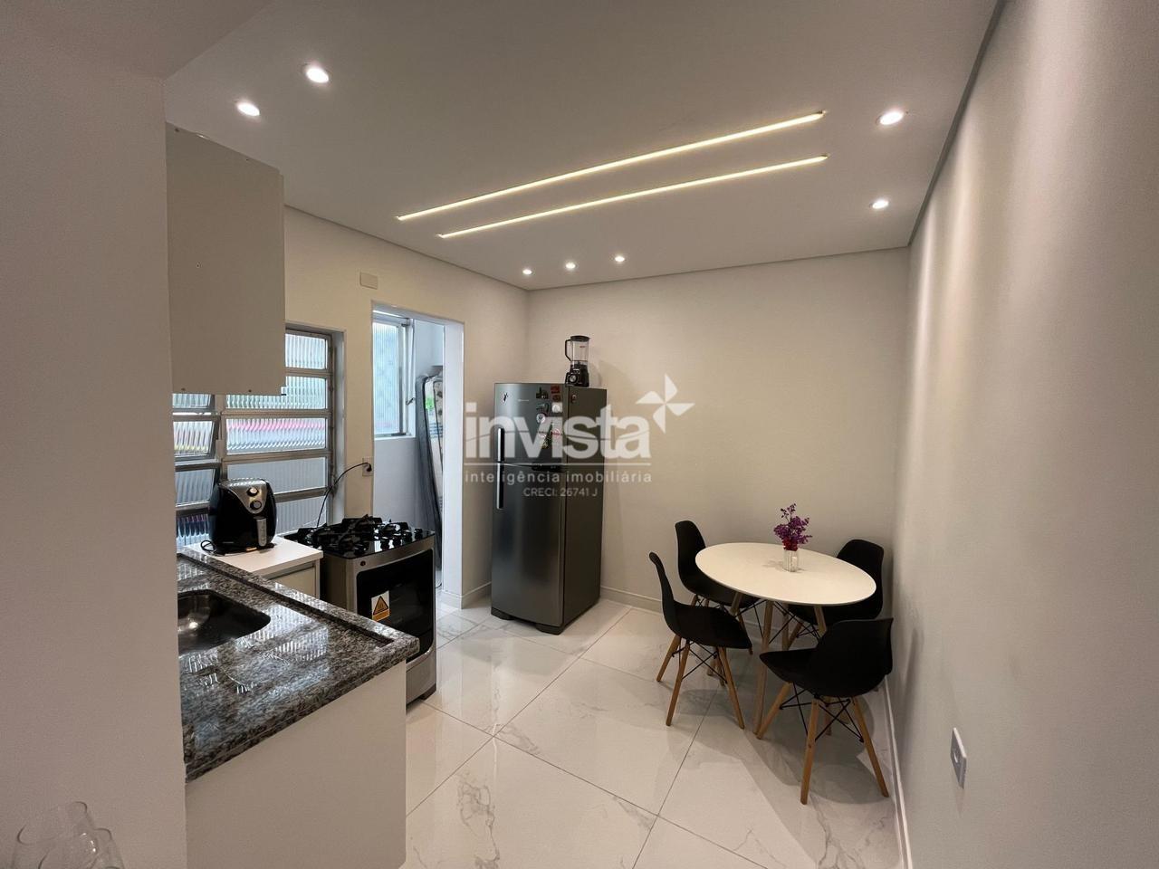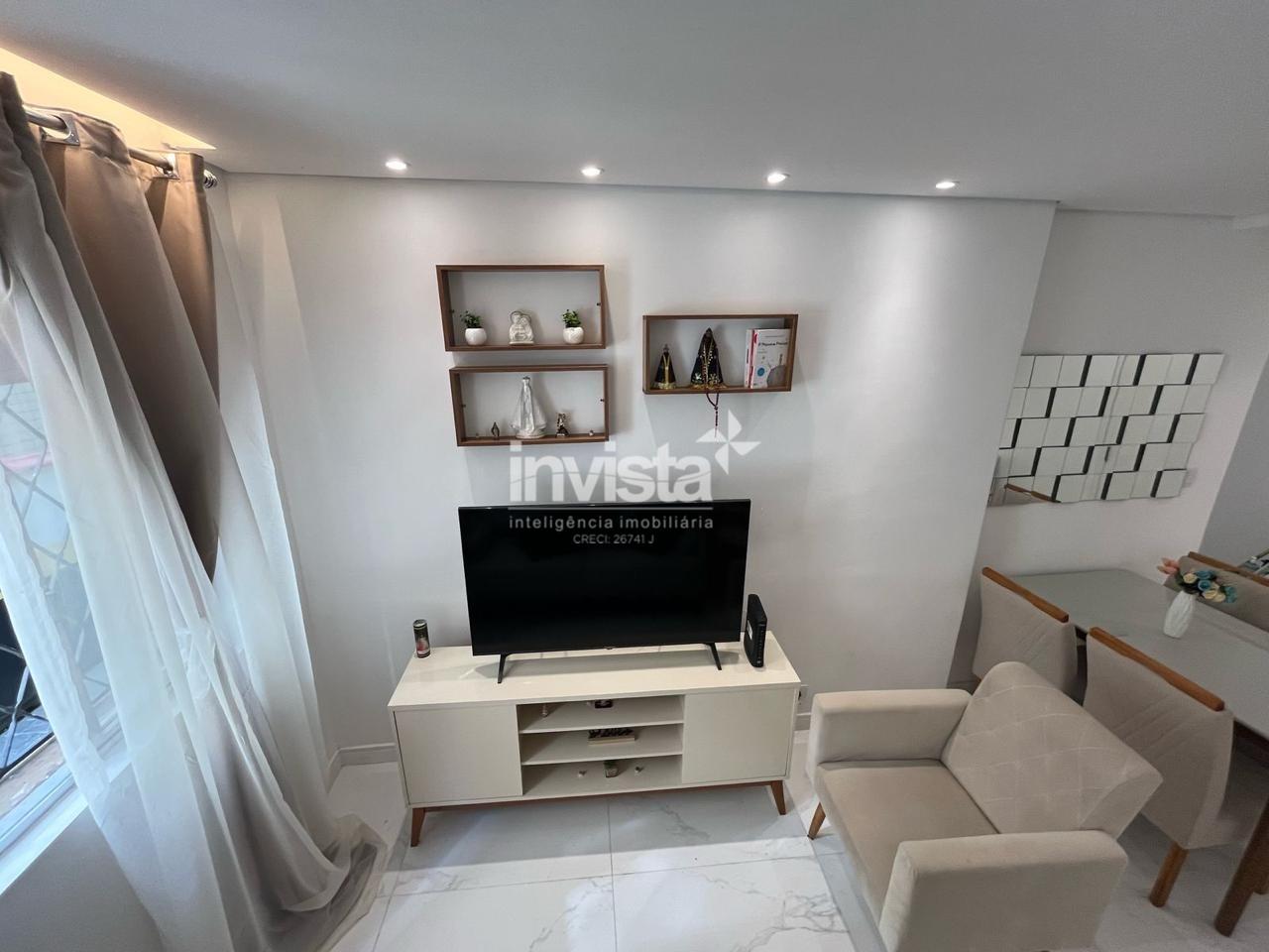 Apartamento térreo totalmente reformado, mobiliado e pronto para morar, localizado a apenas uma quadra da praia, no coração do bairro Boqueirão, em Santos.