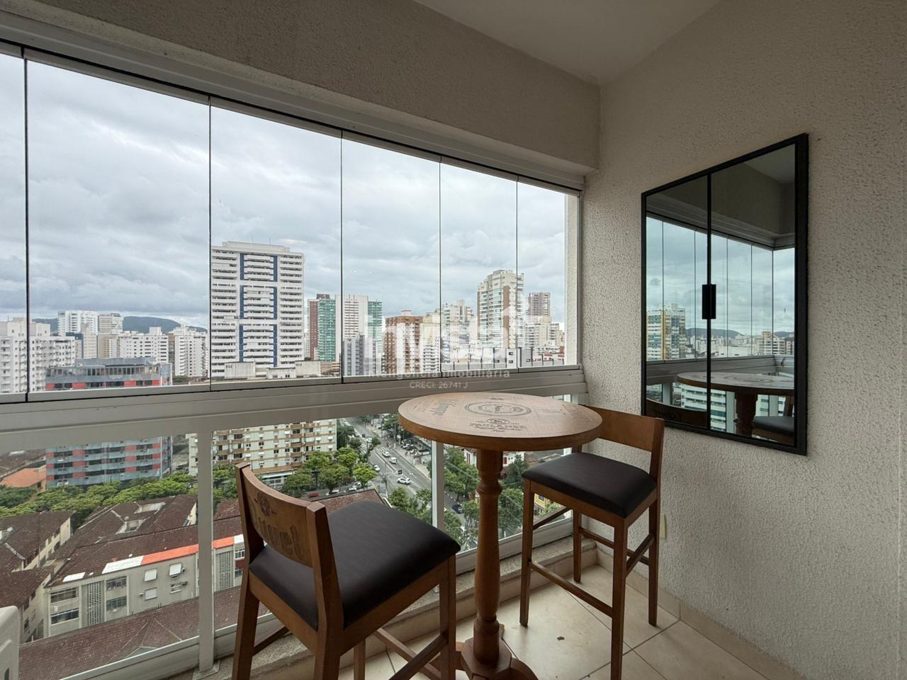 Iluminação natural, fechamento de vidro na varanda, Com infraestrutura de alto padrão: interfone, portão eletrônico, portaria 24h e segurança 24h, além de circuito de TV. Lazer completo incluindo academia, piscina, sala de jogos, sala de massagem, sauna, espaço gourmet, salões de festas, playground, churrasqueira, jardim, wifi e muito mais. Elevadores, lavanderia e água com aquecimento a gás. Localizado em Santos.