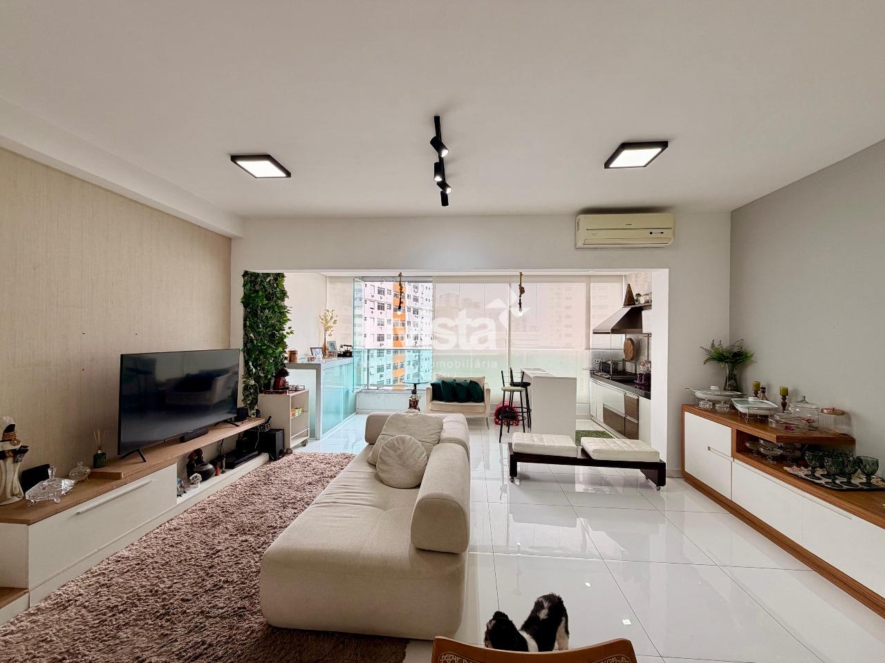 Apartamento com churrasqueira a carvão e varanda integrada à sala, formando um único ambiente amplo, moderno e extremamente agradável.
