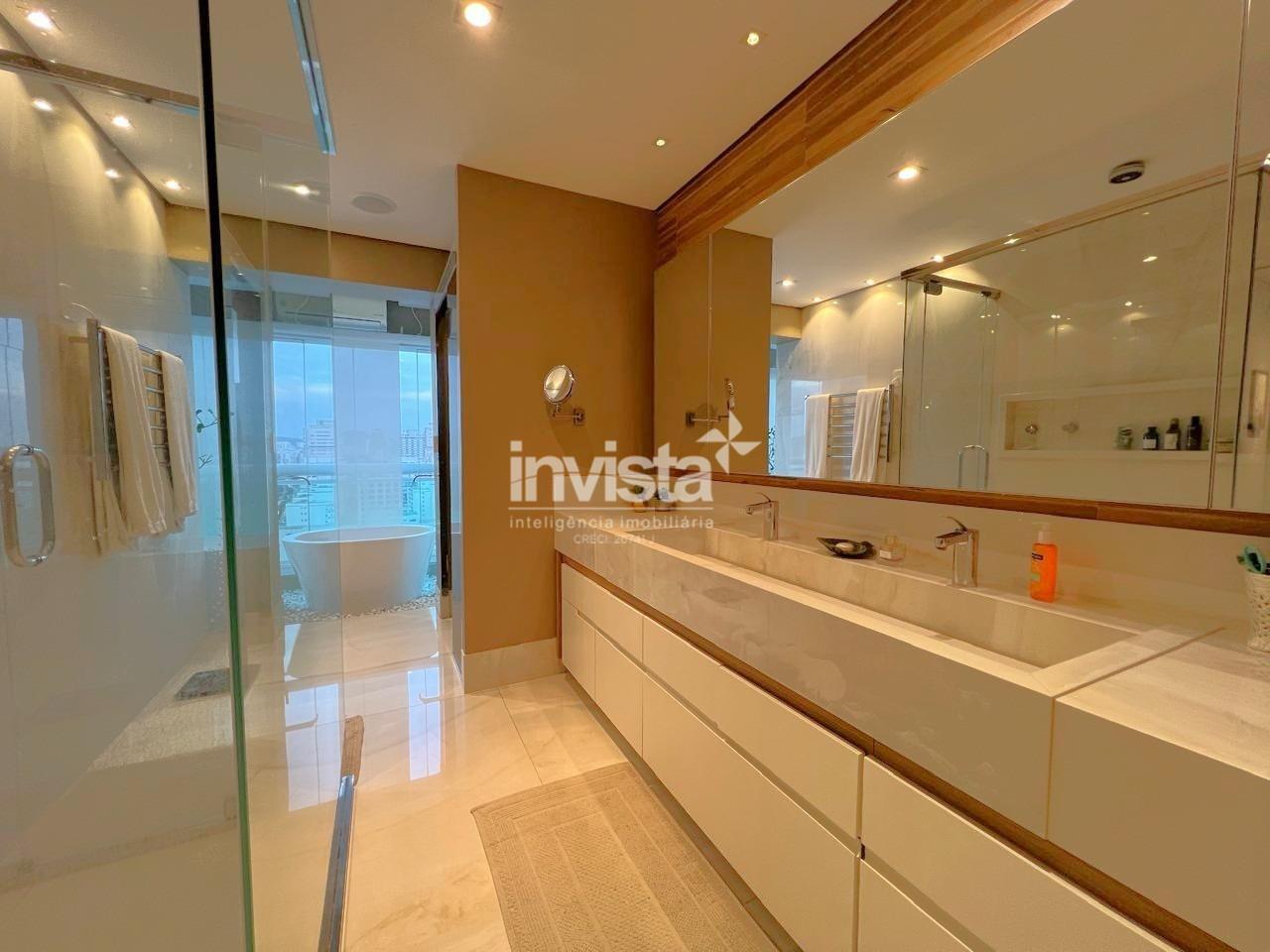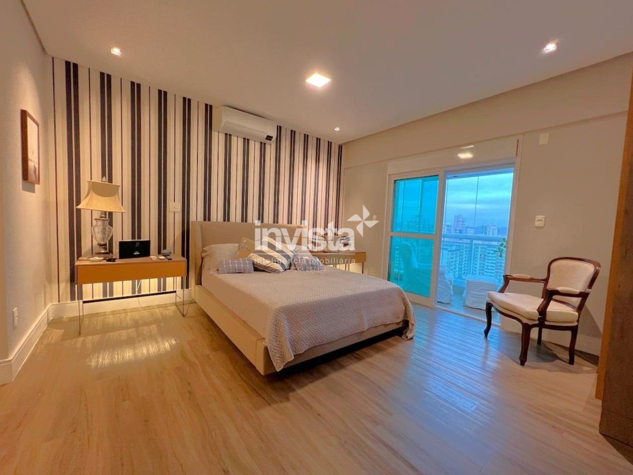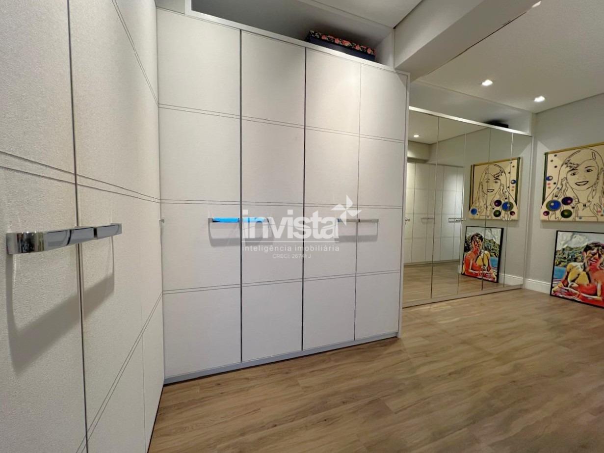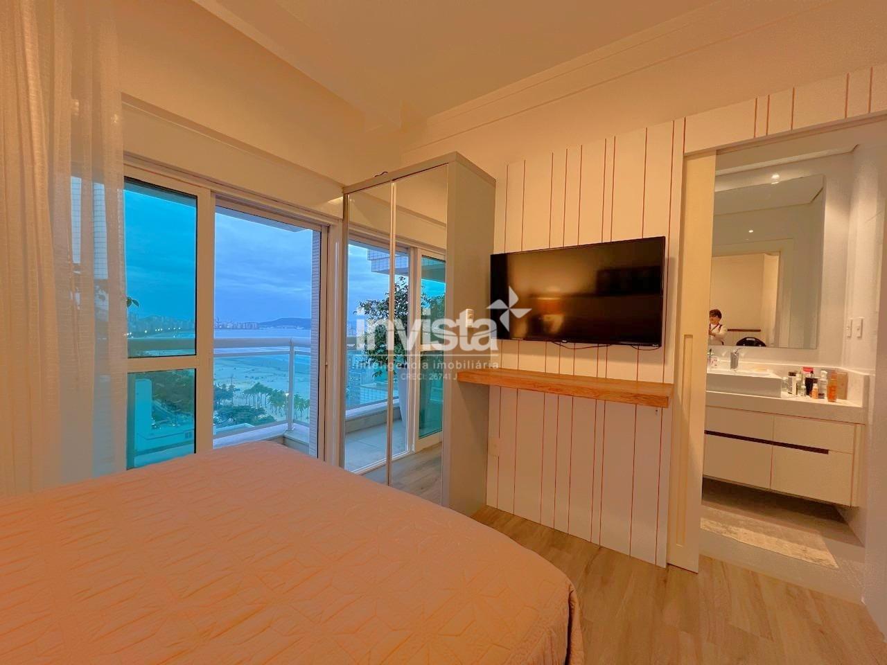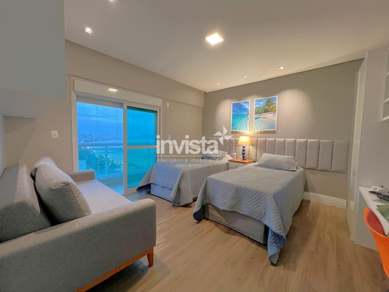 Apartamento luxuoso, em prédio de Alto Padrão no Gonzaga em frente a praia com vista cinematográfica para Orla de Santos, tanto para o Norte como para o Sul, varanda com mais de 100 metros² em volta de todo o apartamento, e todos os ambientes com vista para a praia.