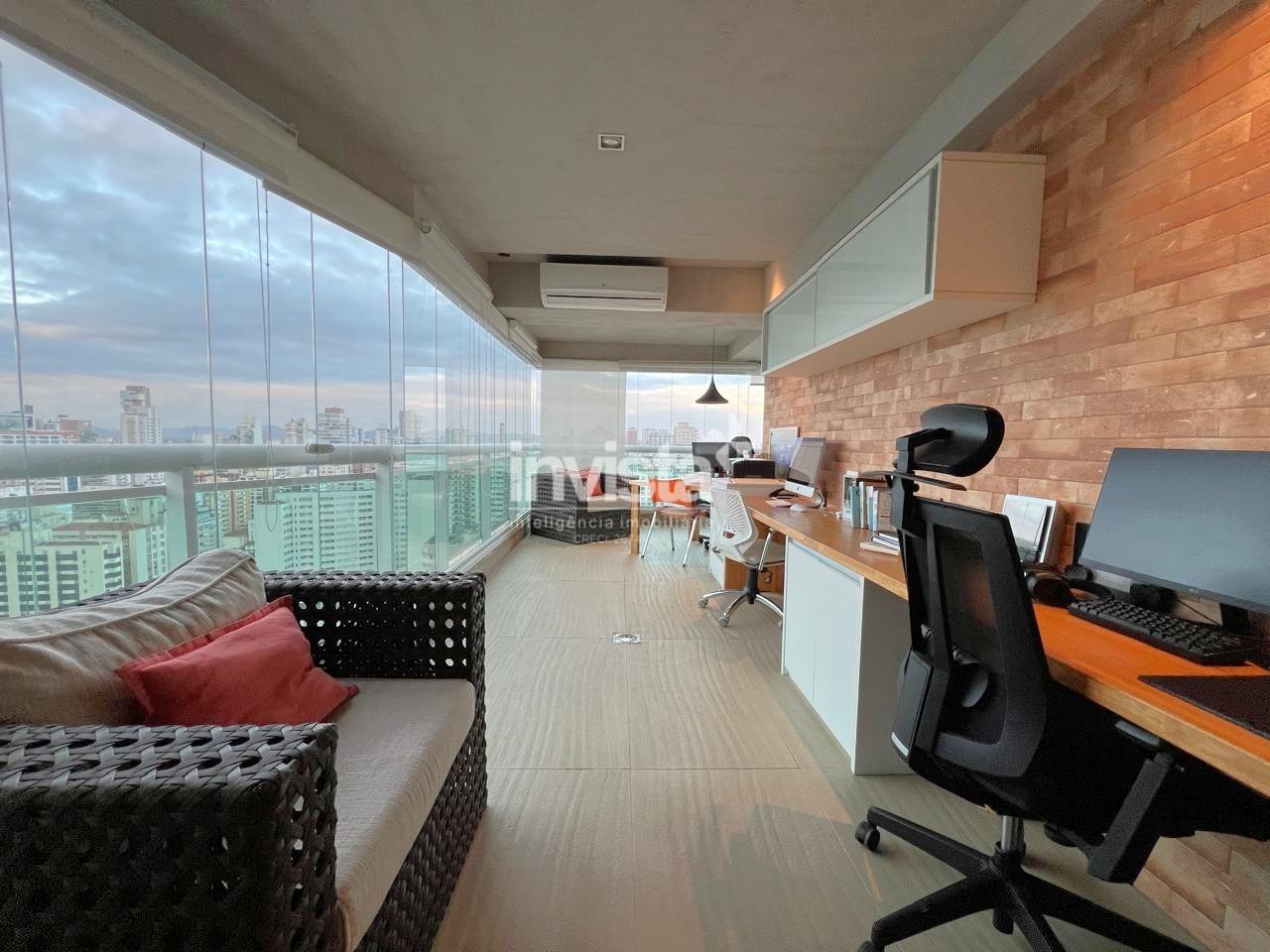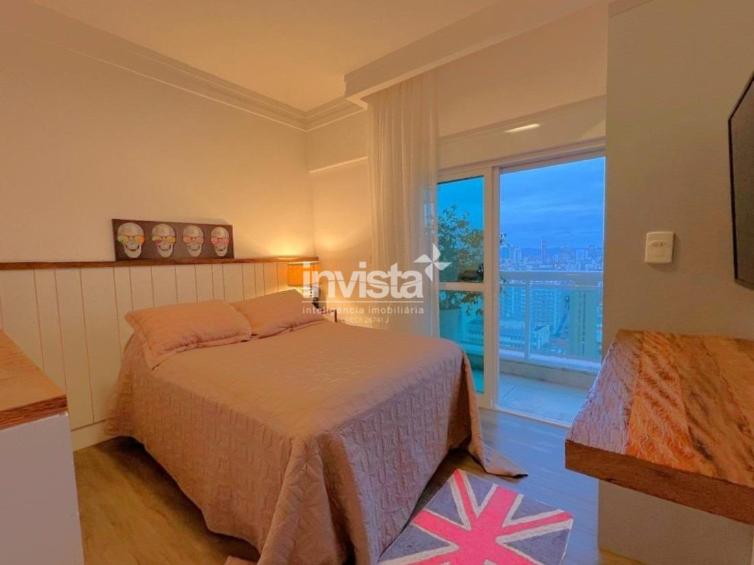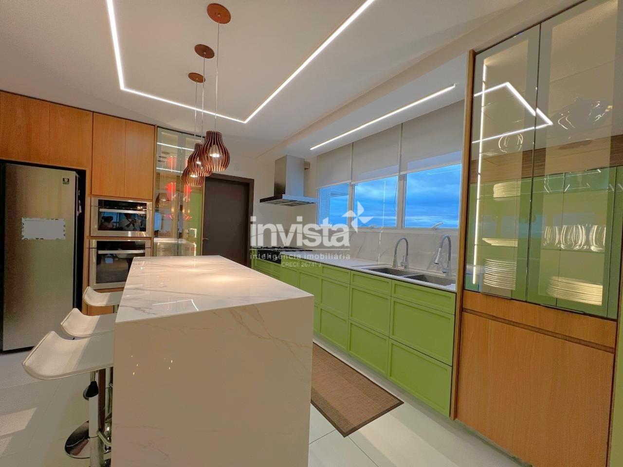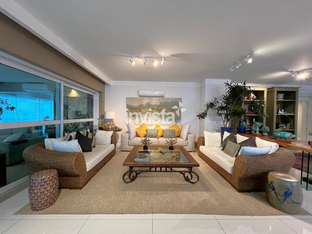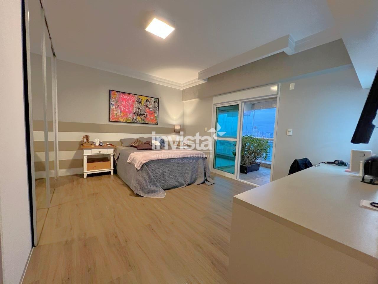 Apartamento luxuoso, em prédio de Alto Padrão no Gonzaga em frente a praia com vista cinematográfica para Orla de Santos, tanto para o Norte como para o Sul, varanda com mais de 100 metros² em volta de todo o apartamento, e todos os ambientes com vista para a praia.