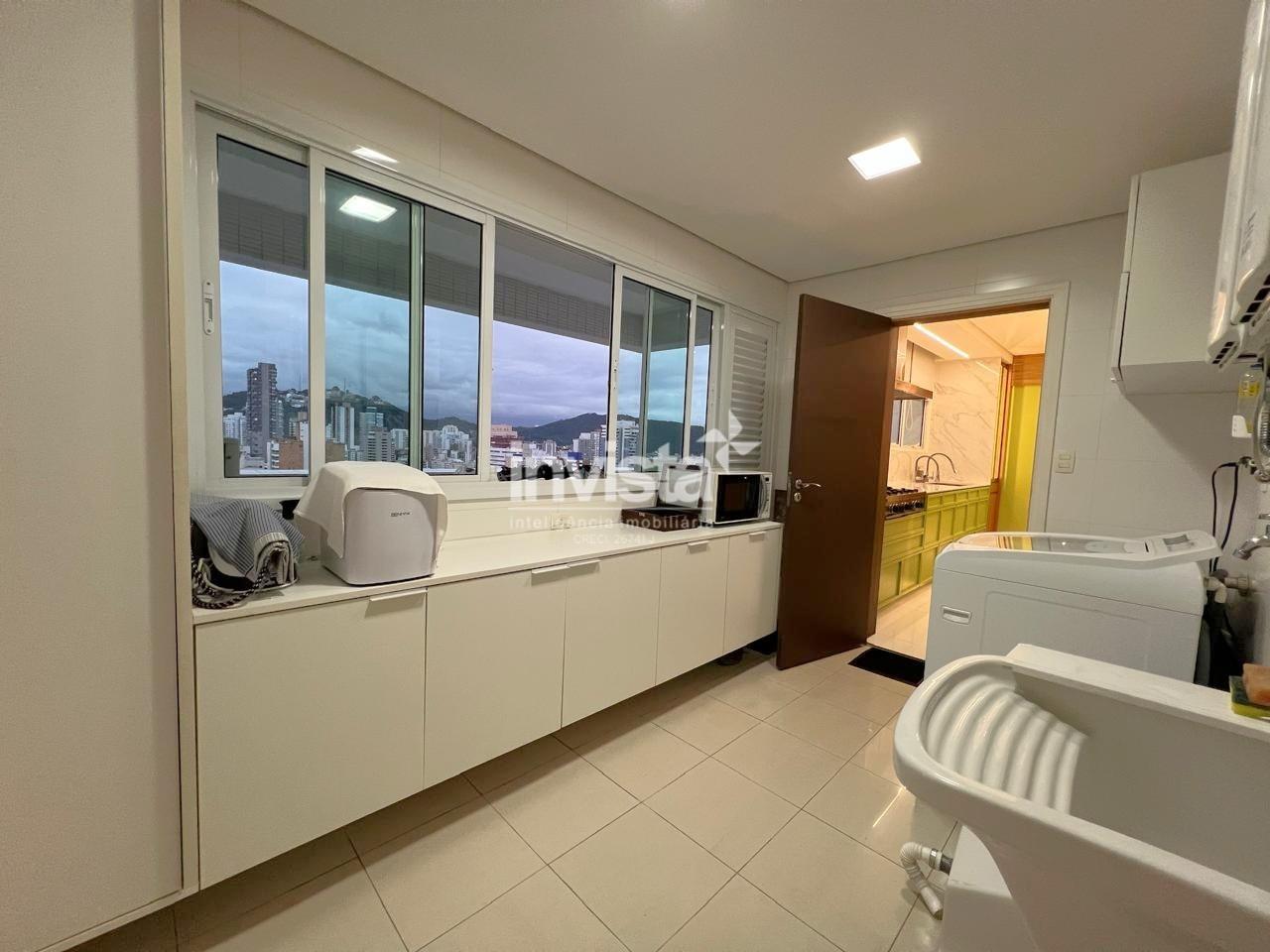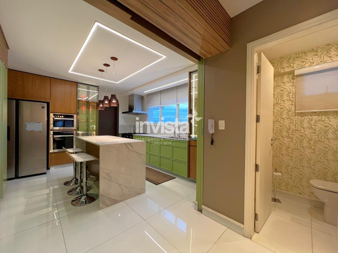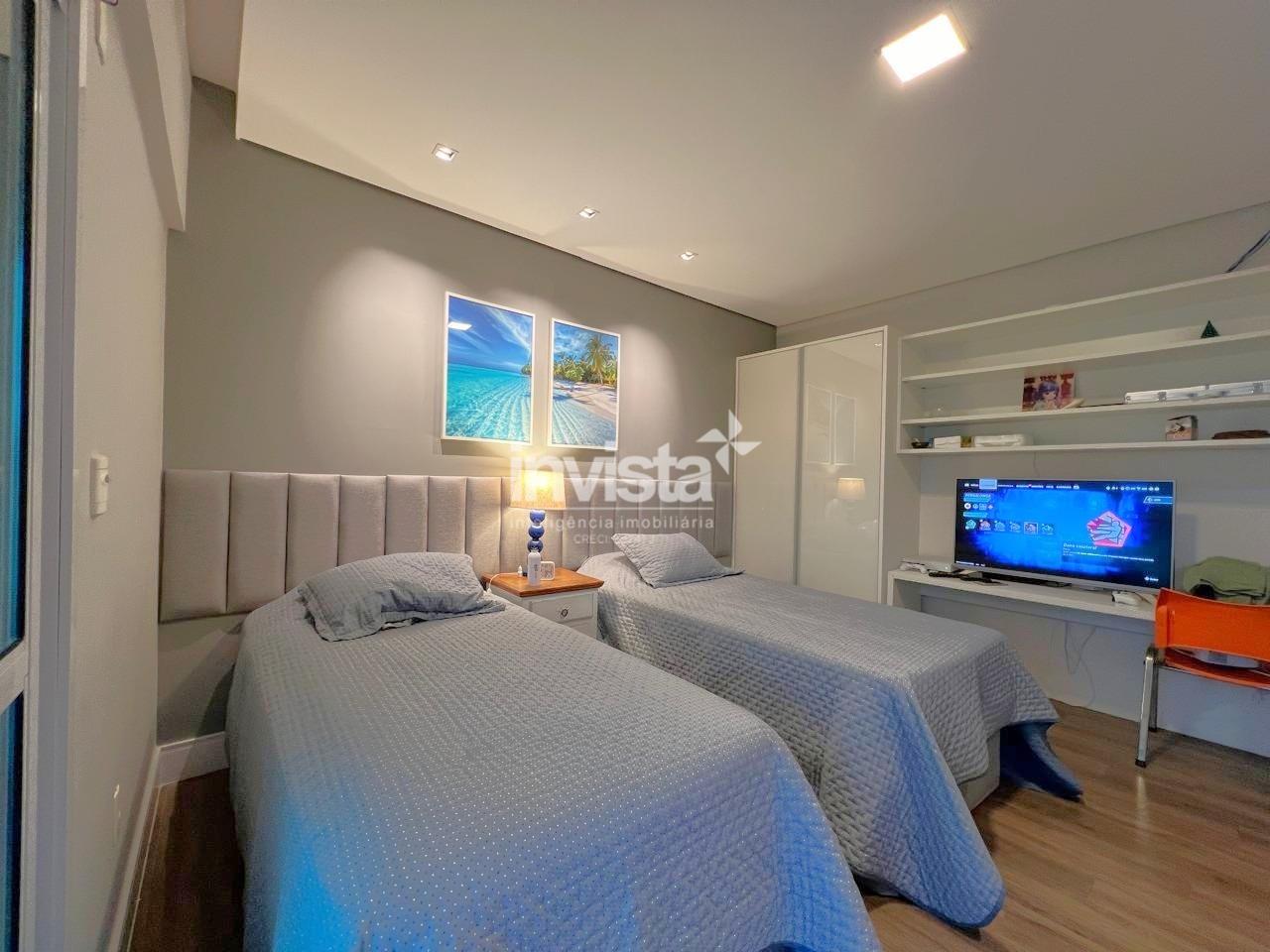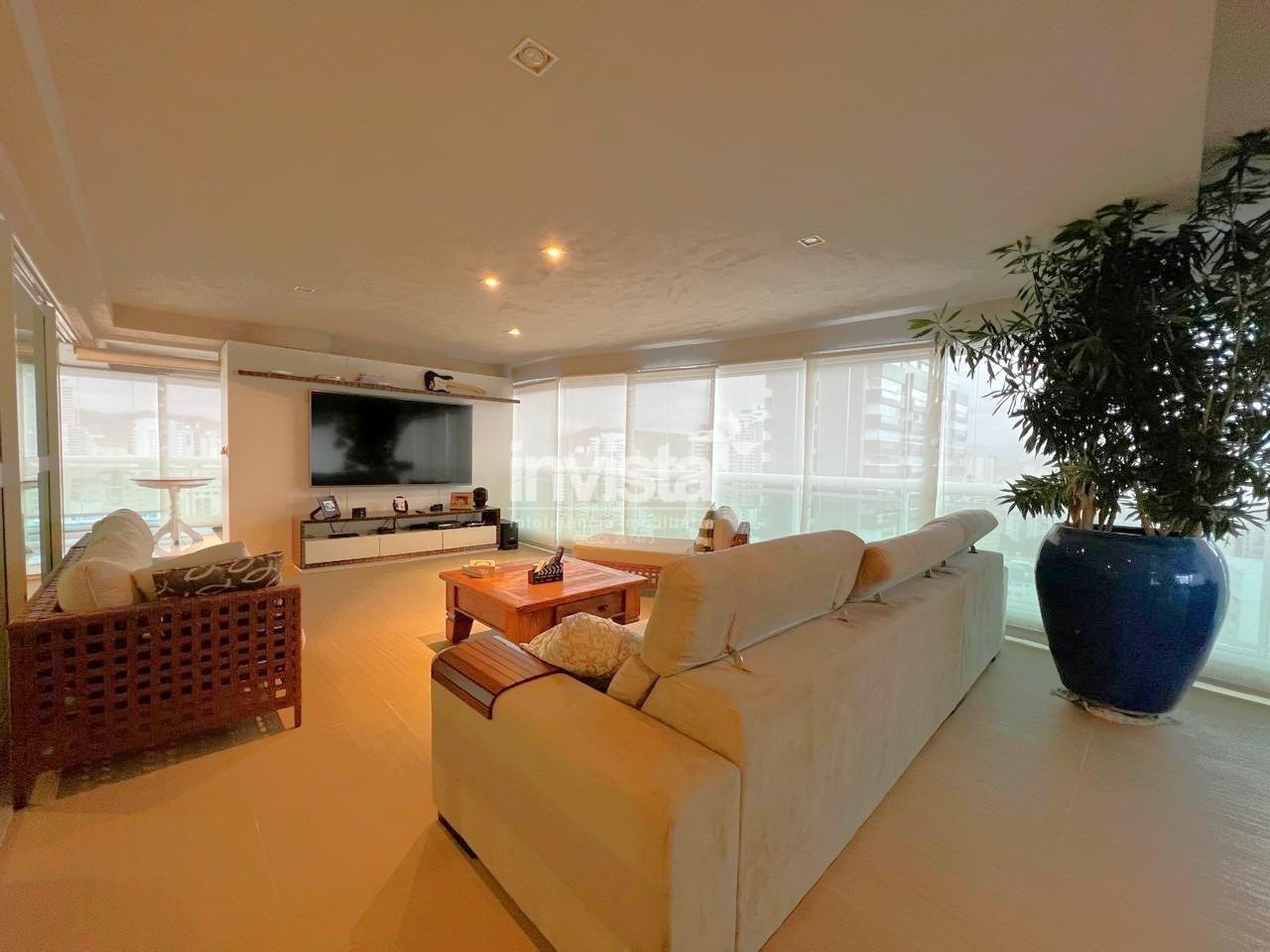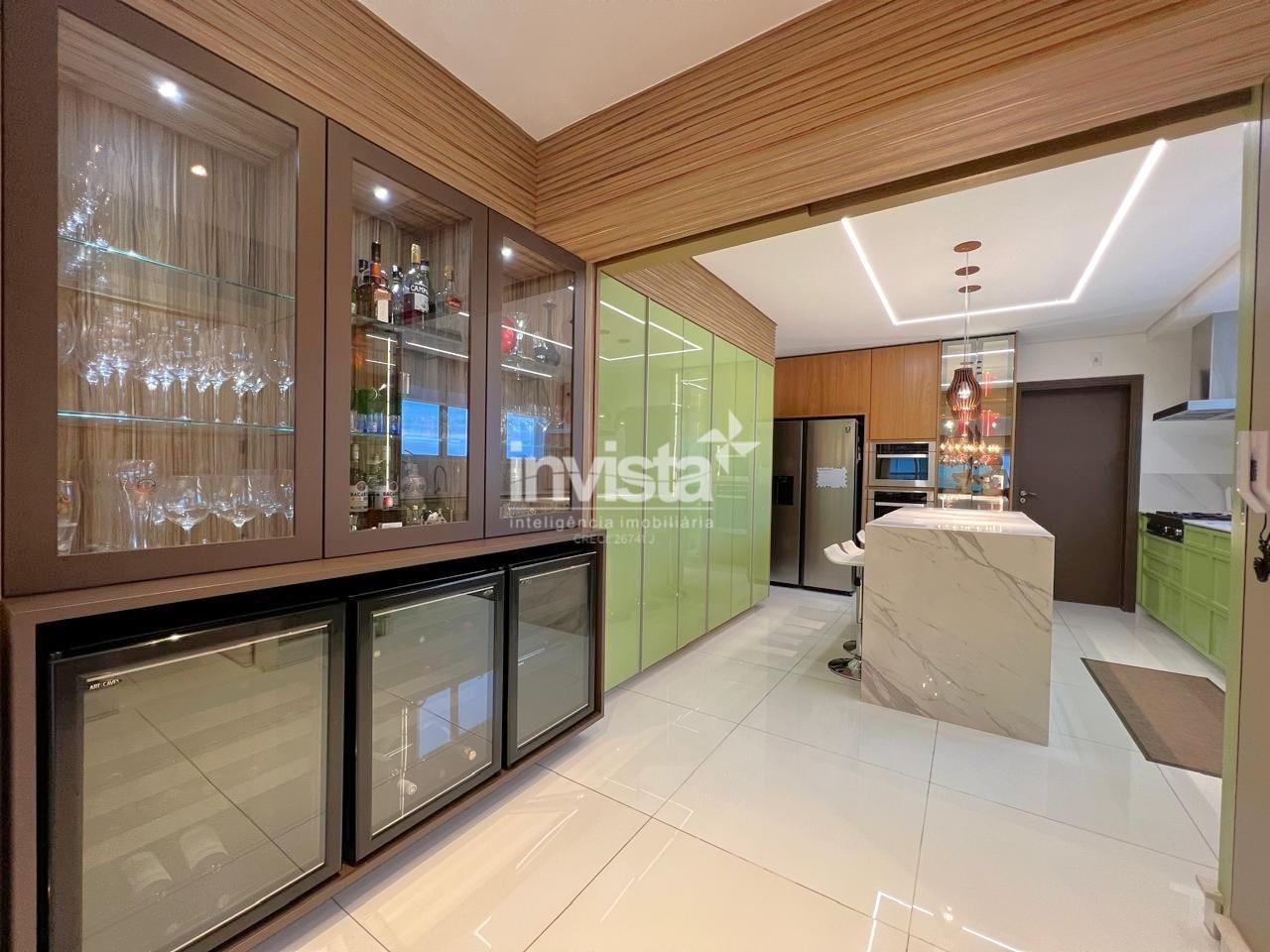Apartamento luxuoso, em prédio de Alto Padrão no Gonzaga em frente a praia com vista cinematográfica para Orla de Santos, tanto para o Norte como para o Sul, varanda com mais de 100 metros² em volta de todo o apartamento, e todos os ambientes com vista para a praia.