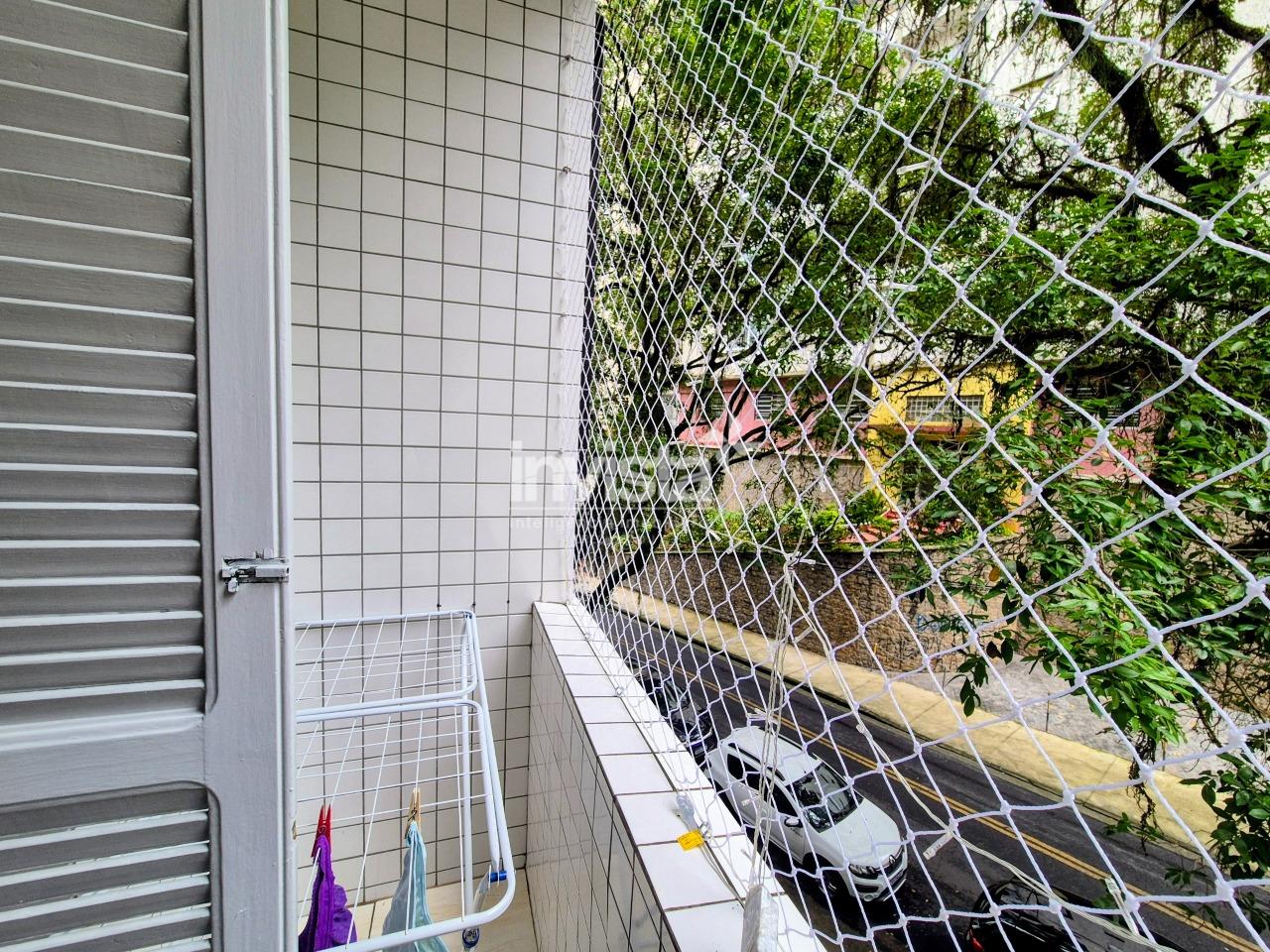 Apartamento a uma quadra da praia, com varanda no quarto, sol da manhã, vista livre e em prédio muito bem cuidado, com elevador e vaga de garagem.