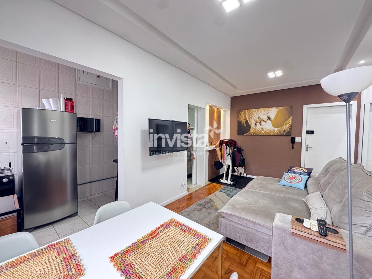 Apartamento de 1 dormitório, totalmente reformado e pronto para morar, em andar alto e com ambientes bem distribuídos. Possui sala para dois ambientes, banheiro social, cozinha com vista para o mar e excelente iluminação natural, proporcionando conforto e uma experiência única de viver de frente para a praia.