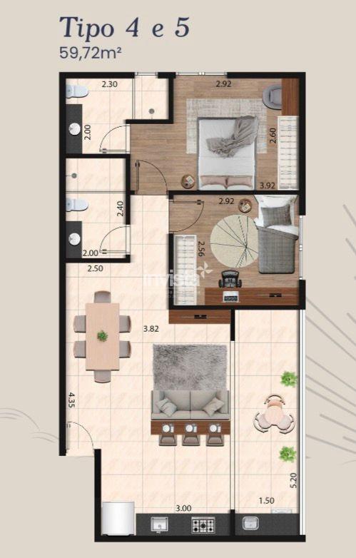 Com 59,72 m², o imóvel foi projetado para quem busca praticidade, conforto e um estilo de vida urbano. Conta com banheiro social e sala com varanda integrada à cozinha, criando um ambiente funcional, bem distribuído e acolhedor, ideal tanto para morar quanto para investir.