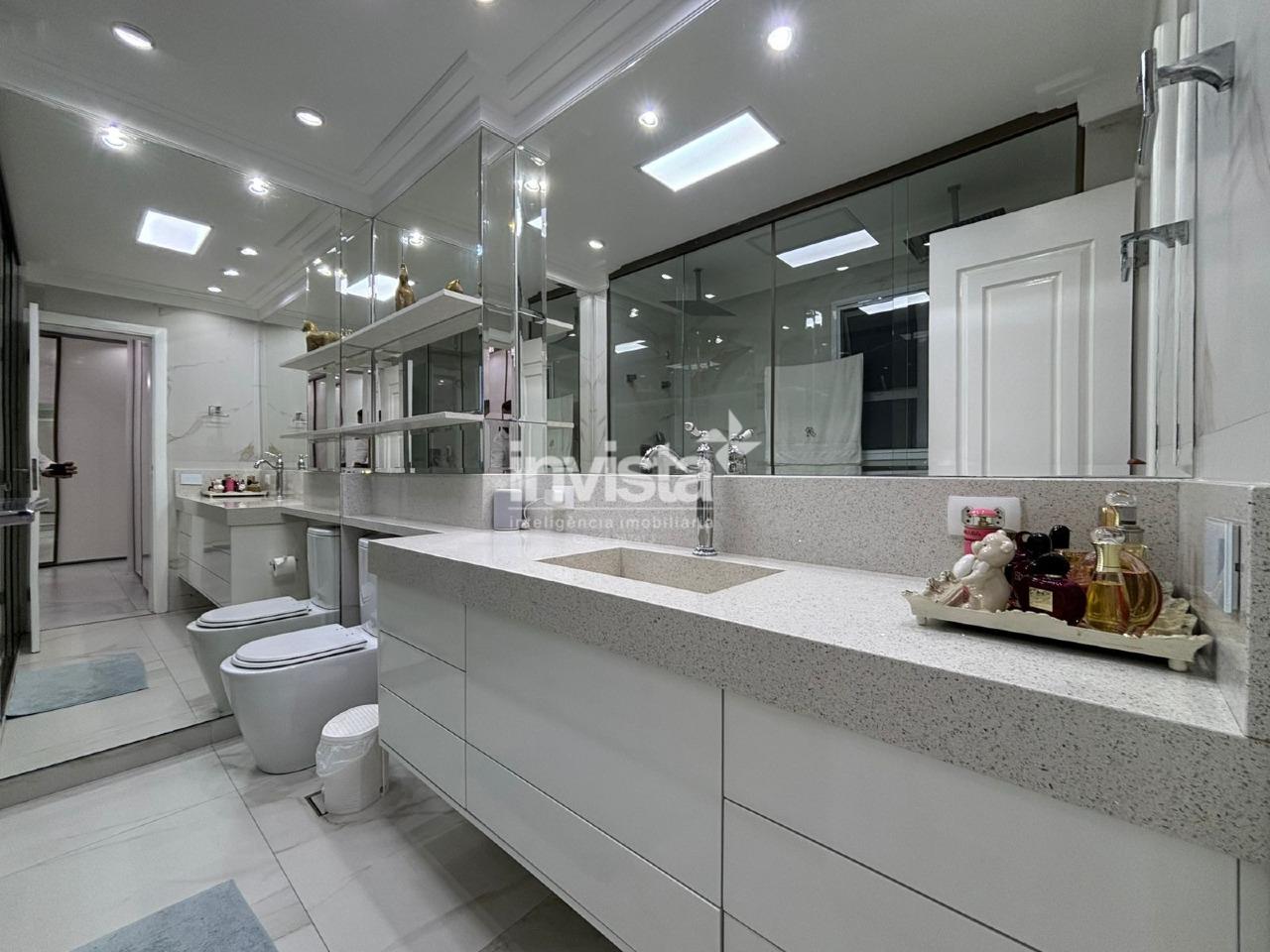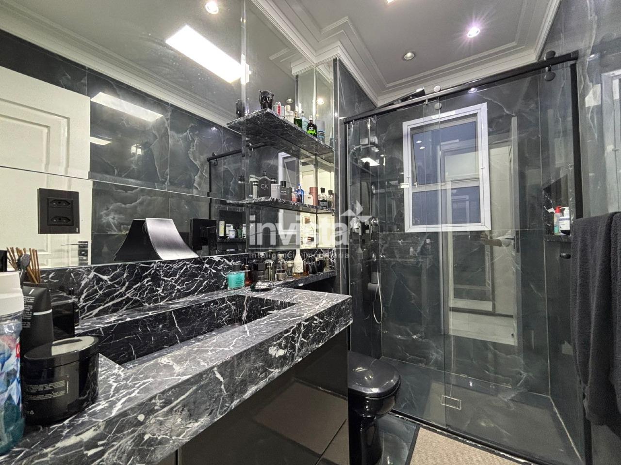 A área íntima contempla quatro amplas suítes, todas equipadas com televisores, mobiliário em laca brilhante e climatização com ar-condicionado LG Inverter. A suíte master é um verdadeiro refúgio particular: banheiro senhor e senhora, amplo closet, e um elegante escritório integrado à varanda com frigobar, criando um ambiente reservado e funcional. A parede é adornada com sofisticados quadros em mármore Carrara, elevando ainda mais o padrão estético.