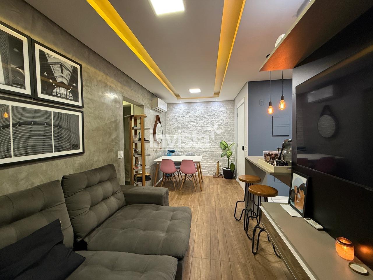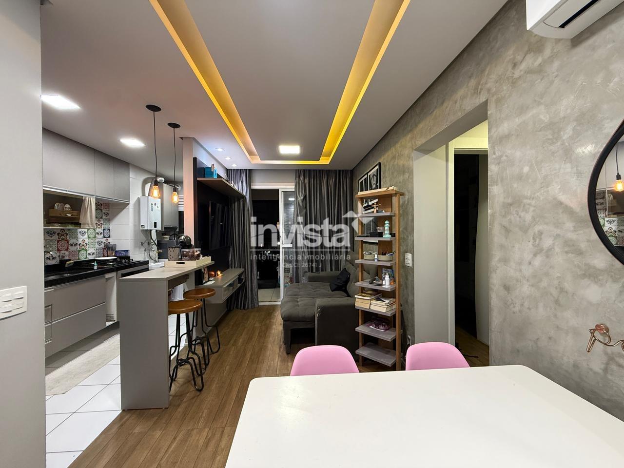 Apartamento com 2 dormitórios, sendo 1 suíte, com planta moderna e bem aproveitada. Sala para dois ambientes integrada à varanda e cozinha americana, criando um espaço funcional e aconchegante.