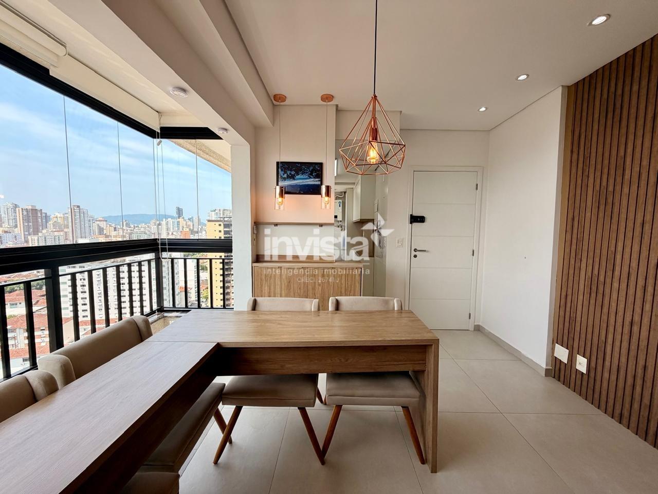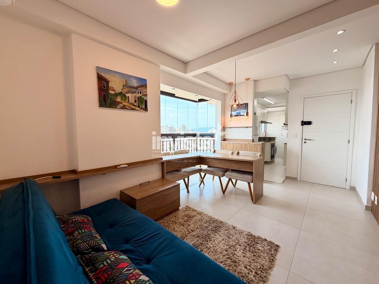 • Sala integrada à varanda, com bela vista da cidade de Santos