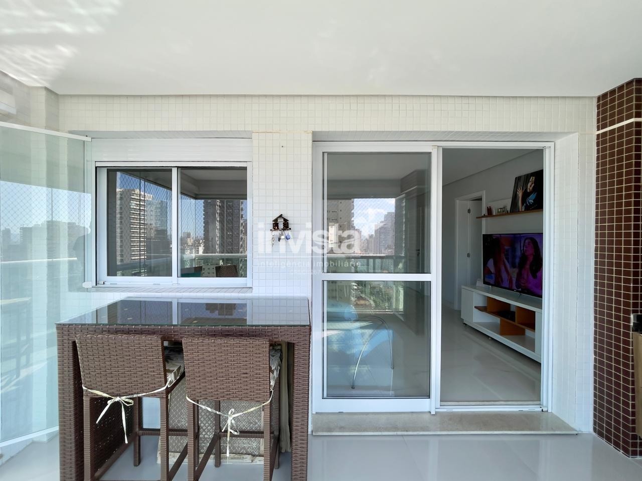 A varanda com churrasqueira é fechada com vidro, e o apartamento conta com 2 vagas de garagem em linha.