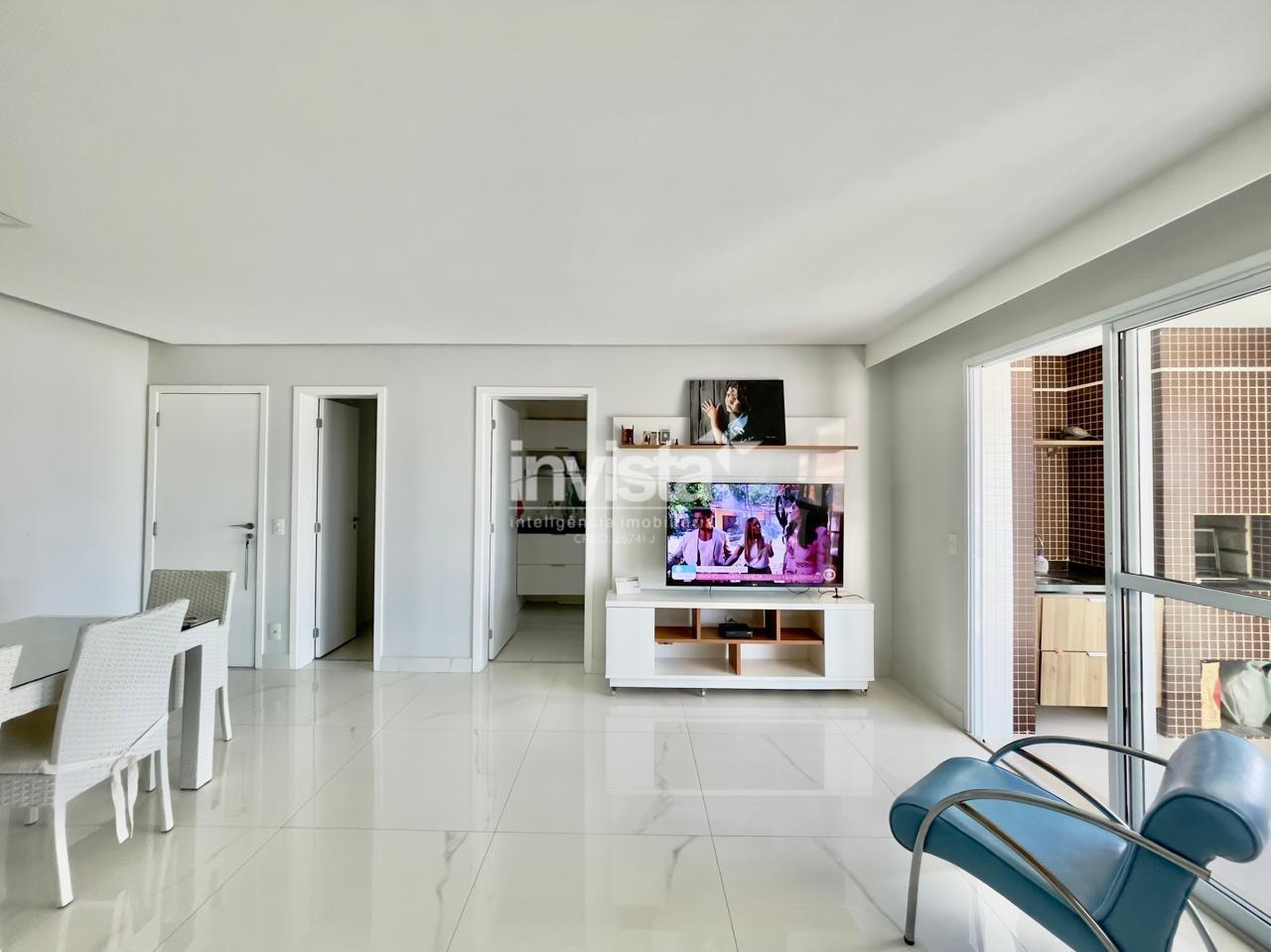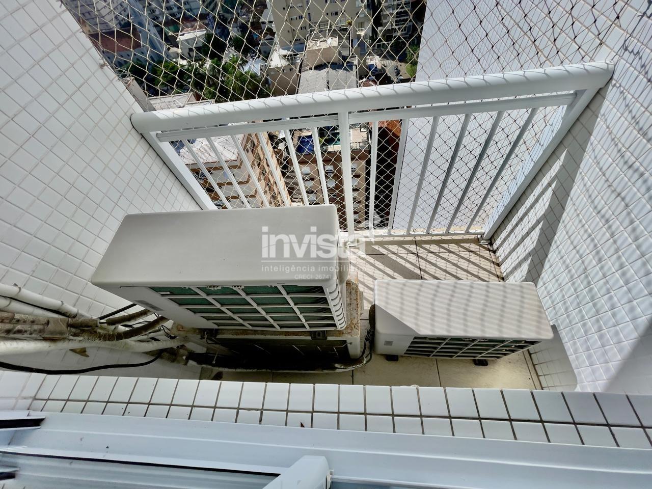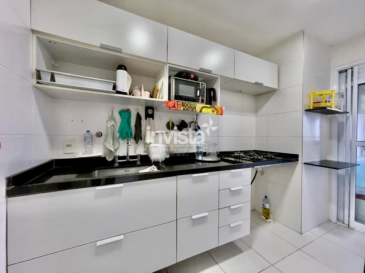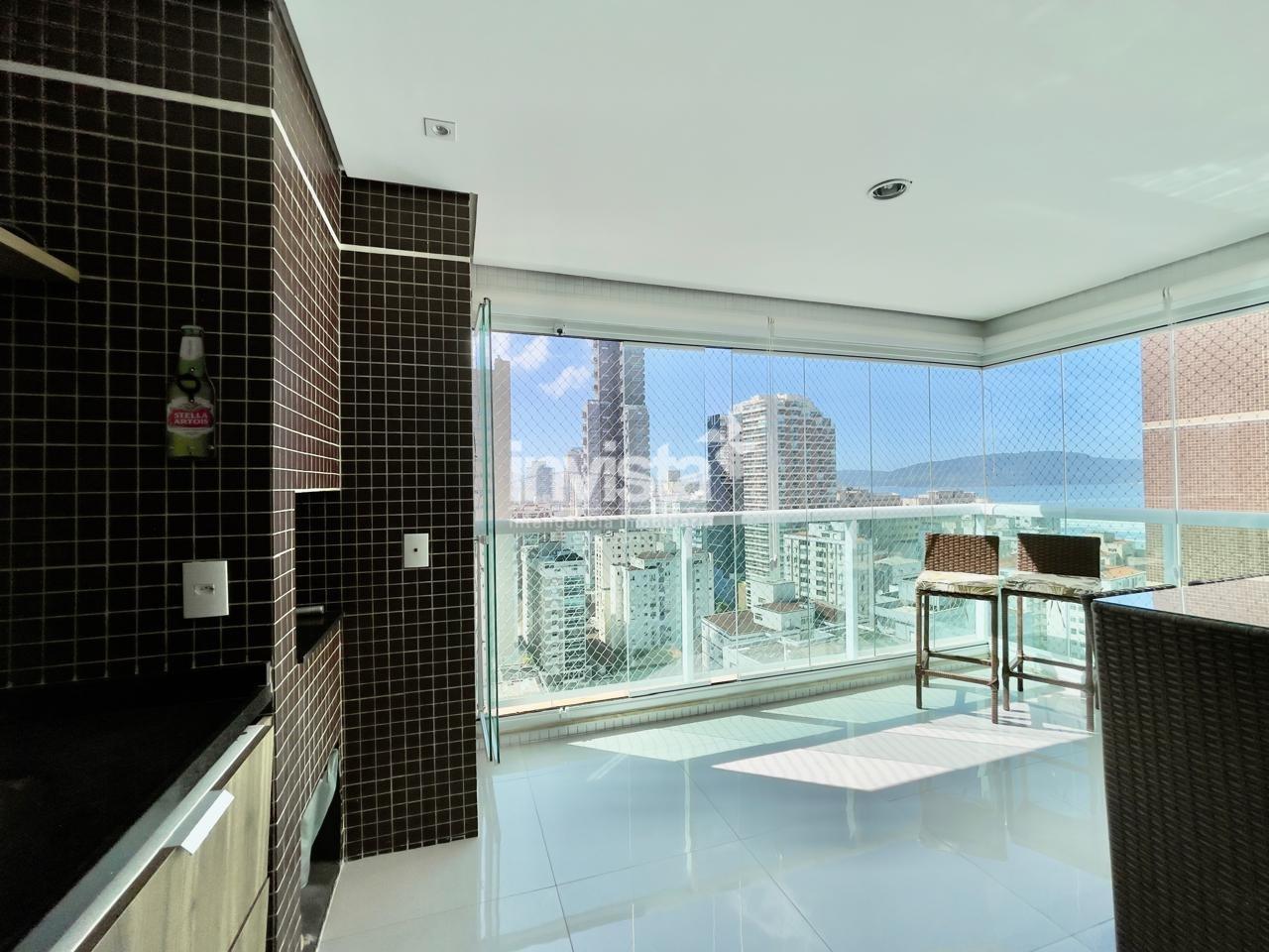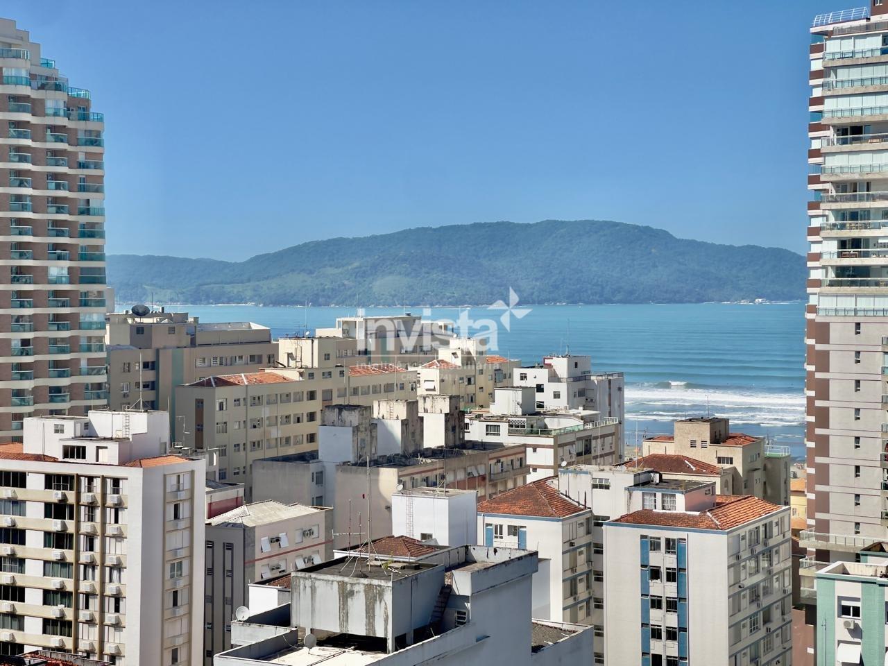 Condomínio com lazer a 2 quadras da praia da Pompéia, em andar alto e com vista para o mar.