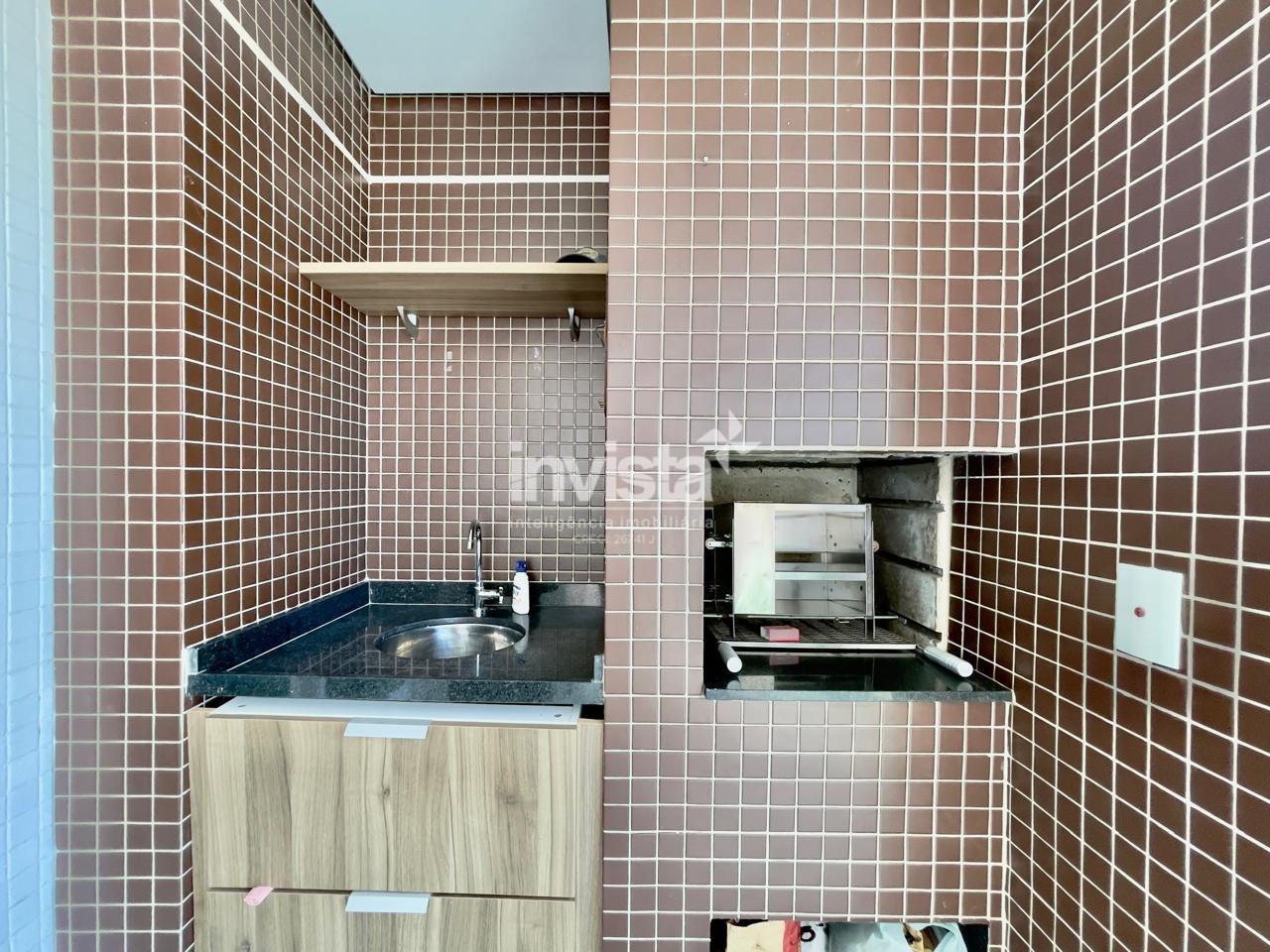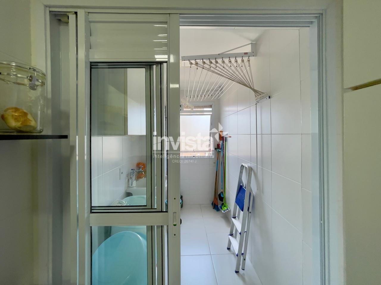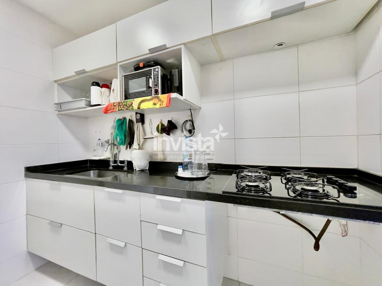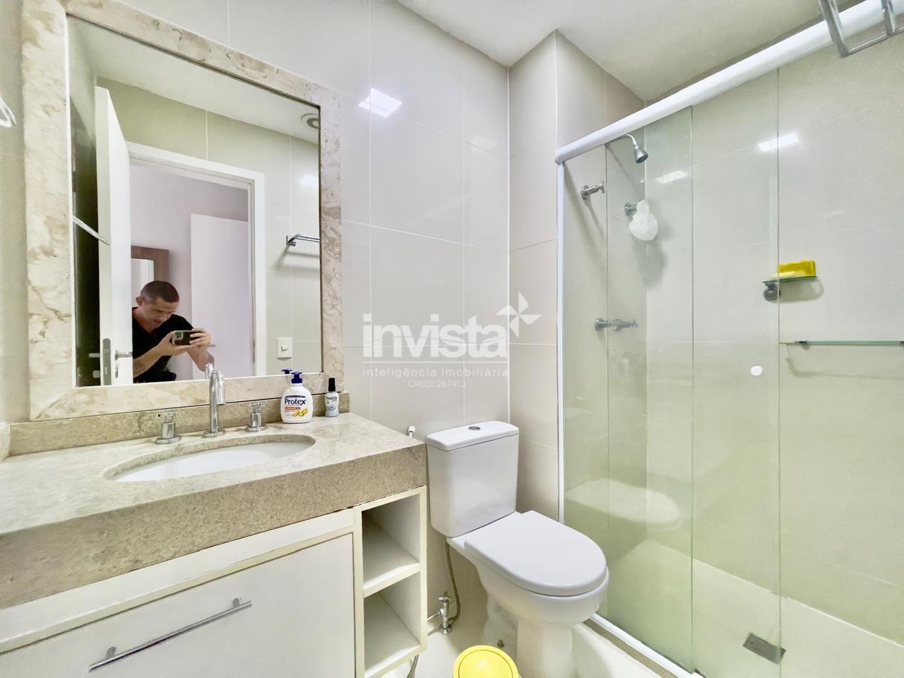 Condomínio com lazer a 2 quadras da praia da Pompéia, em andar alto e com vista para o mar.