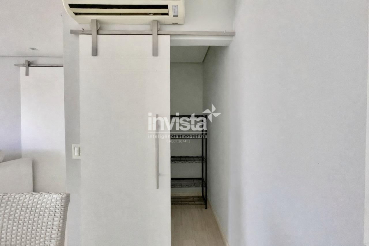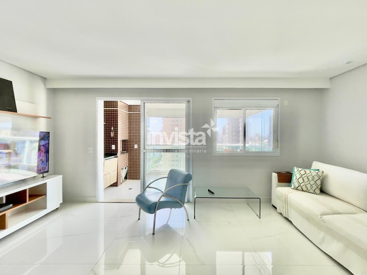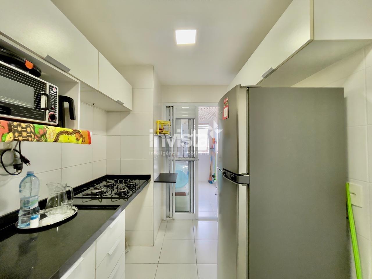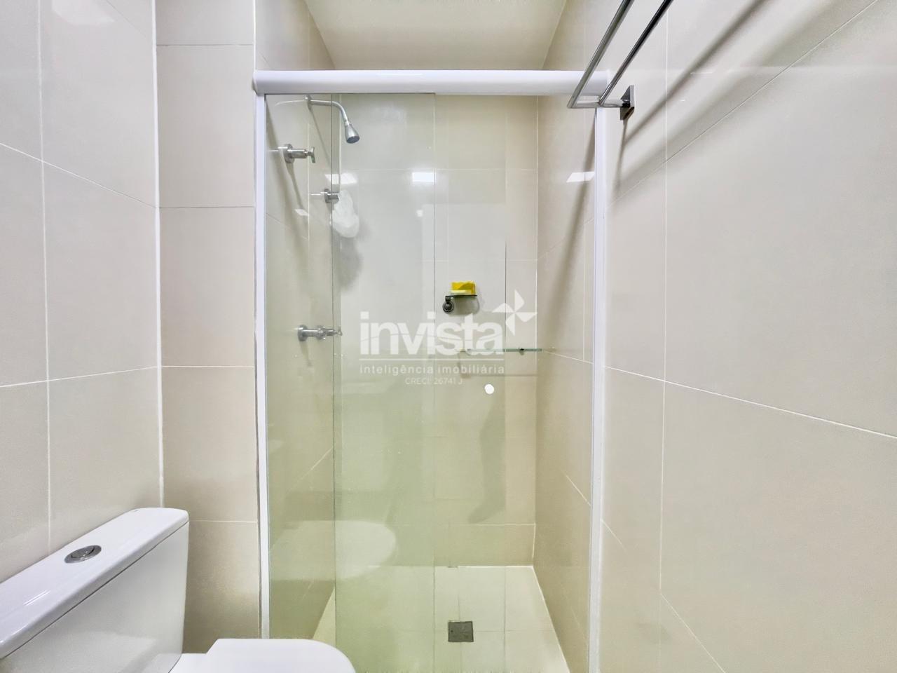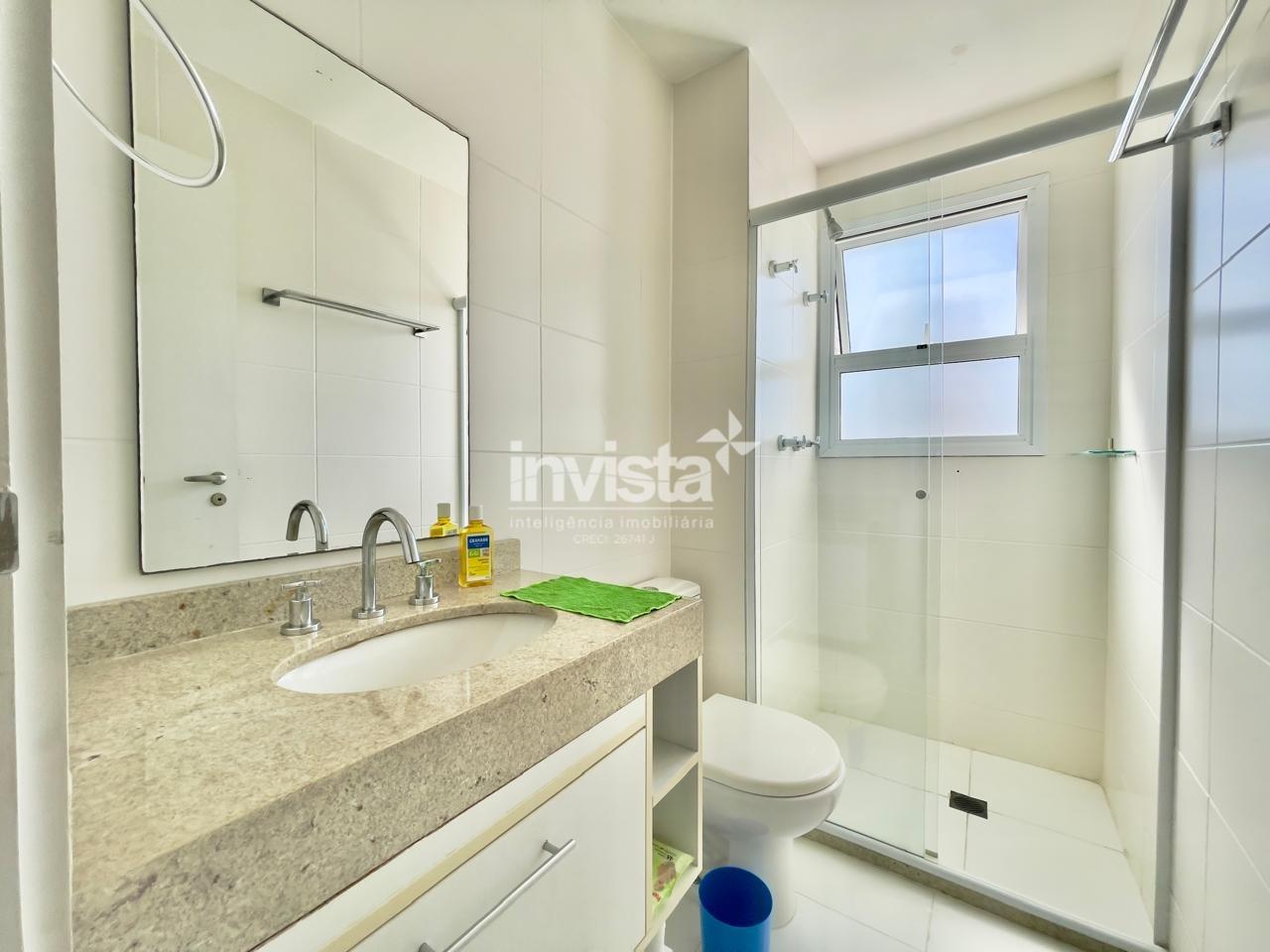Condomínio com lazer a 2 quadras da praia da Pompéia, em andar alto e com vista para o mar.