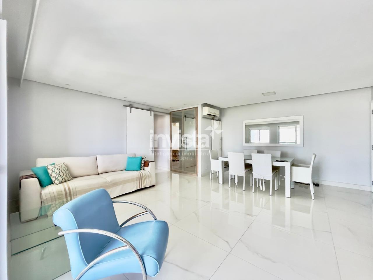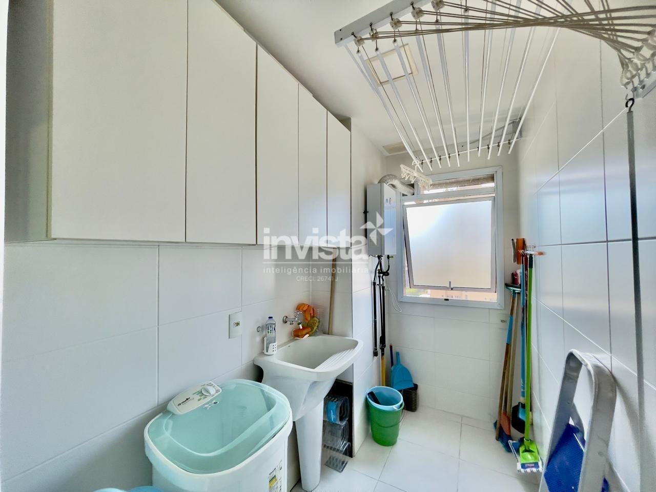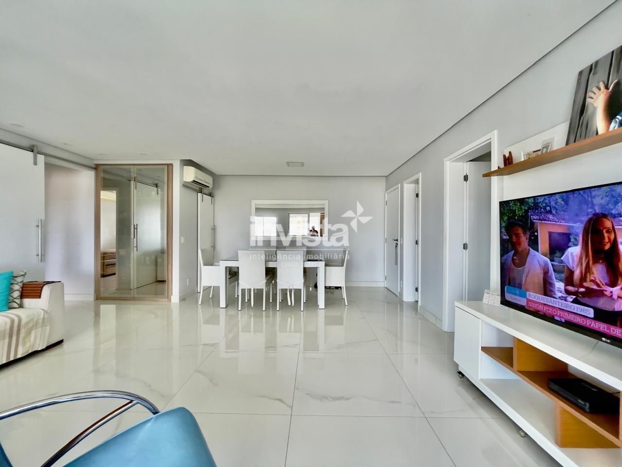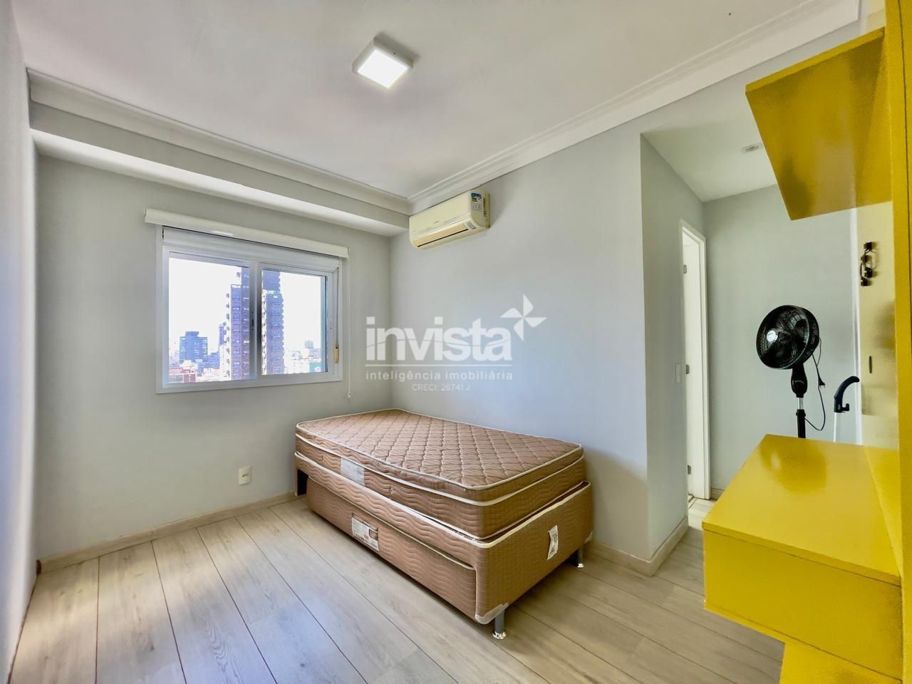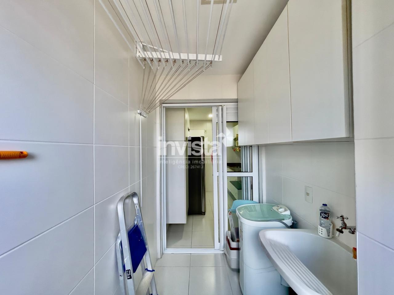 Condomínio com lazer a 2 quadras da praia da Pompéia, em andar alto e com vista para o mar.
