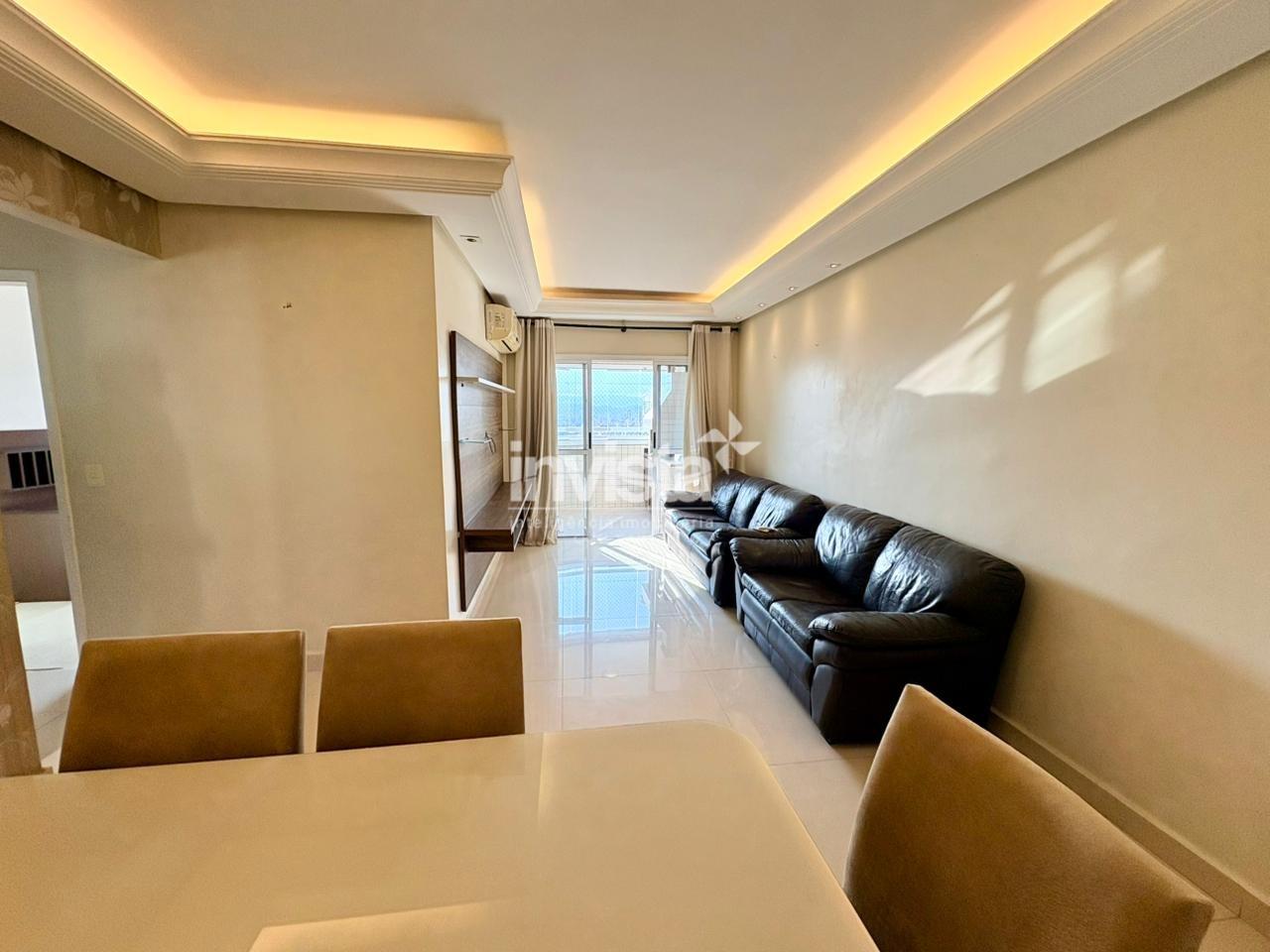 São 2 dormitórios, sendo 1 suíte, com uma planta bem distribuída e funcional. A sala ampla com varanda gourmet e churrasqueira, integrada à vista mar panorâmica, é o grande destaque — perfeita para receber, relaxar e aproveitar o melhor de Santos.