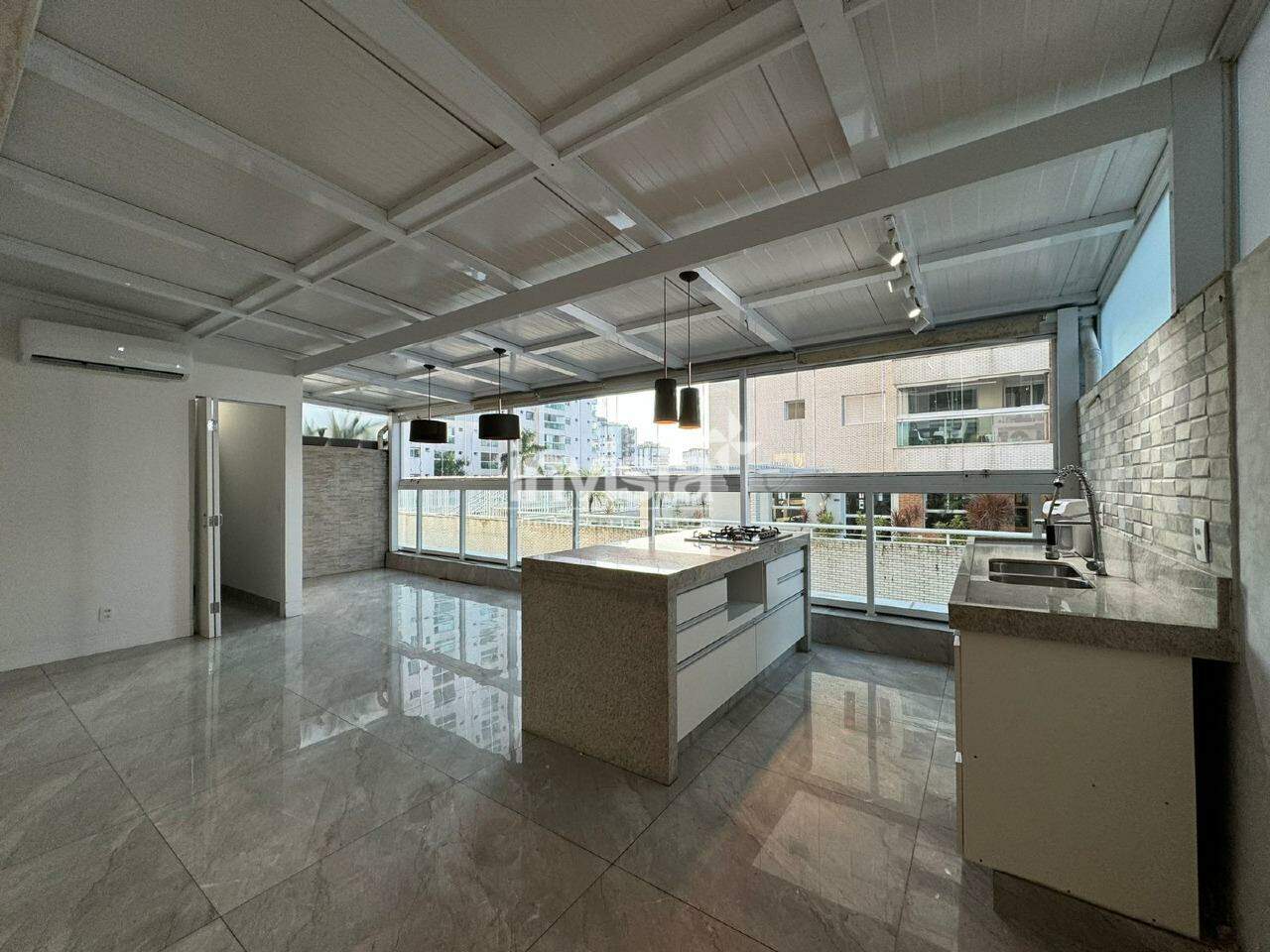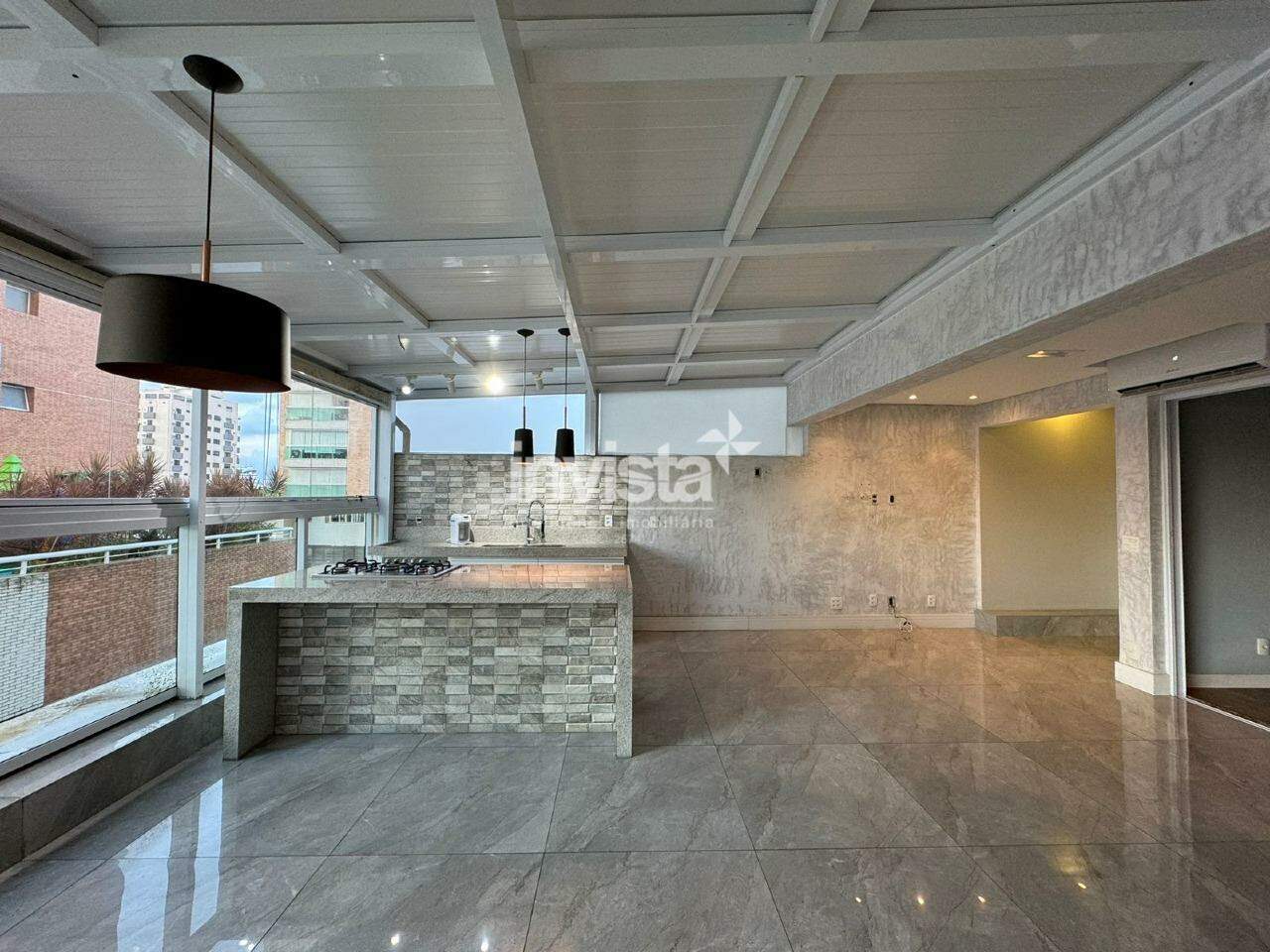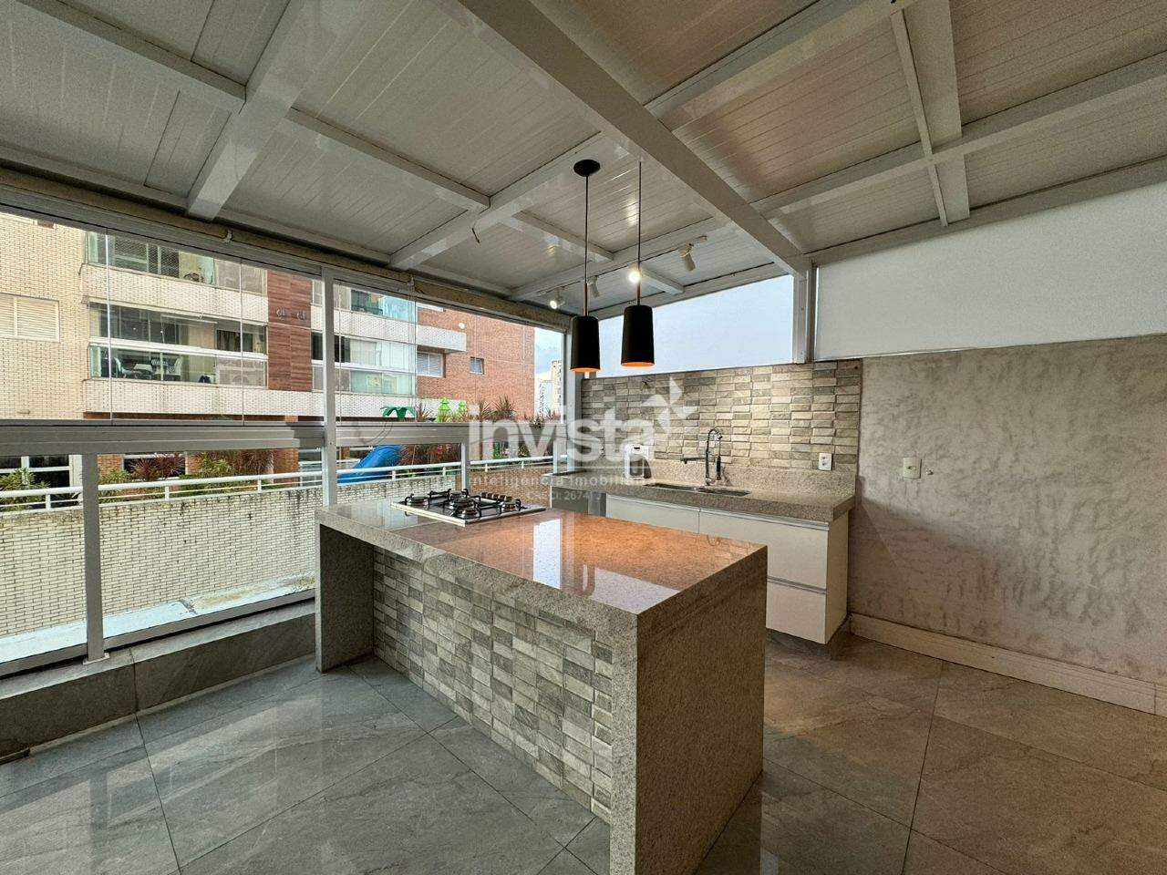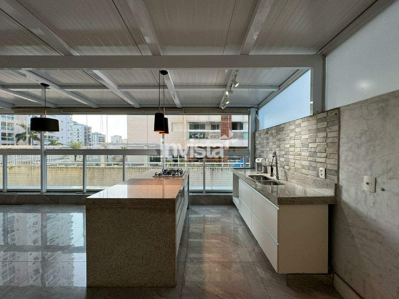A área gourmet é um show, espaçosa, com uma ilha para dividir a cozinha da sala de estar e de jantar, e uma área de sol ótima.