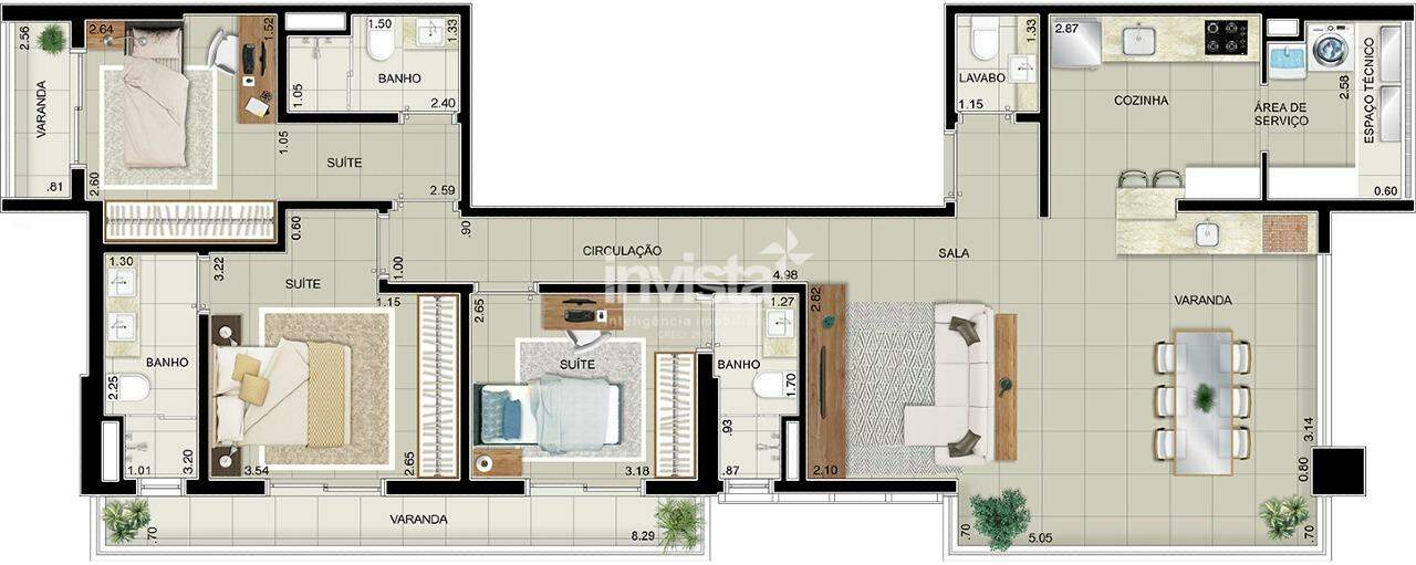 – 3 suítes, com 117 m² ou 120 m²