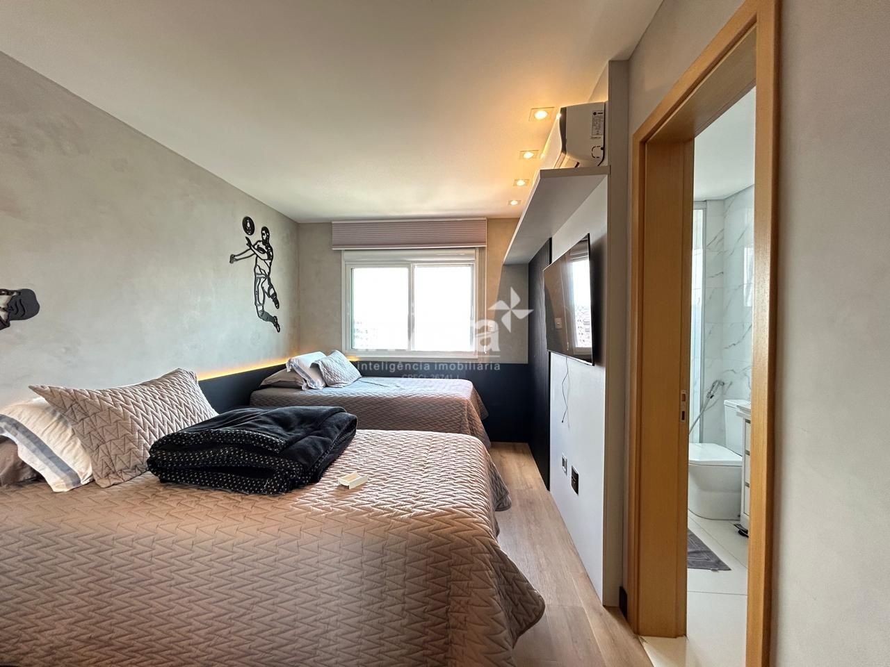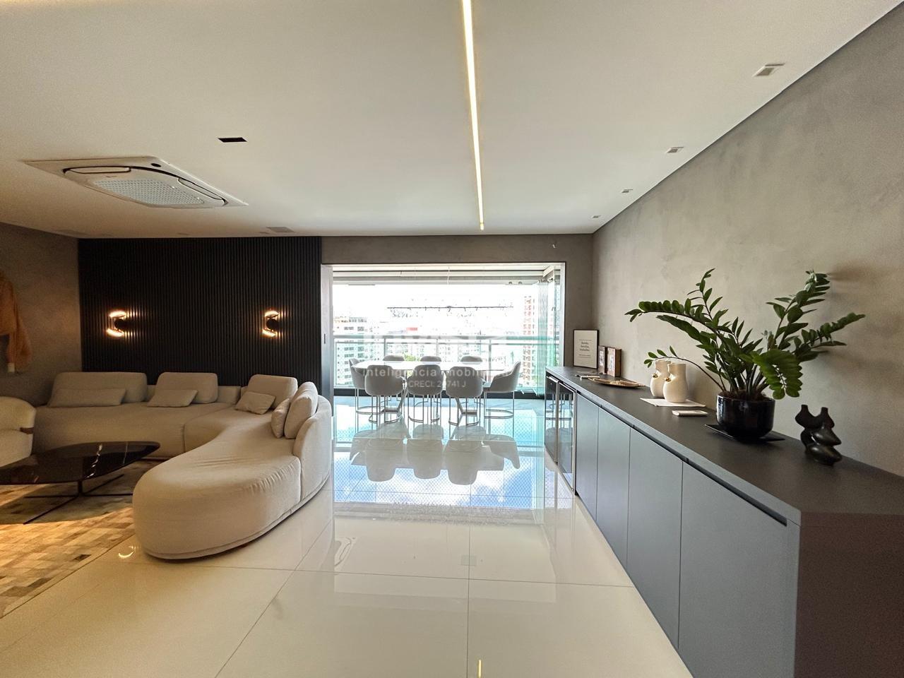 Com 168 m², o imóvel oferece sala ampla para dois ambientes com ar-condicionado central, elegante varanda gourmet com vista livre, três suítes bem iluminadas e ventiladas — sendo a suíte master com varanda privativa.