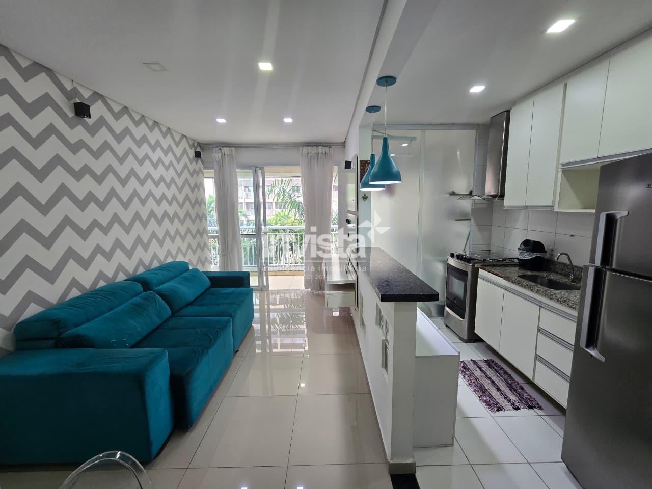 O imóvel possui sala 2 ambientes integrados a varanda e com piso em porcelanato, teto rebaixado em gesso, além de planejados em todos os ambientes e ar-condicionado no dormitório.