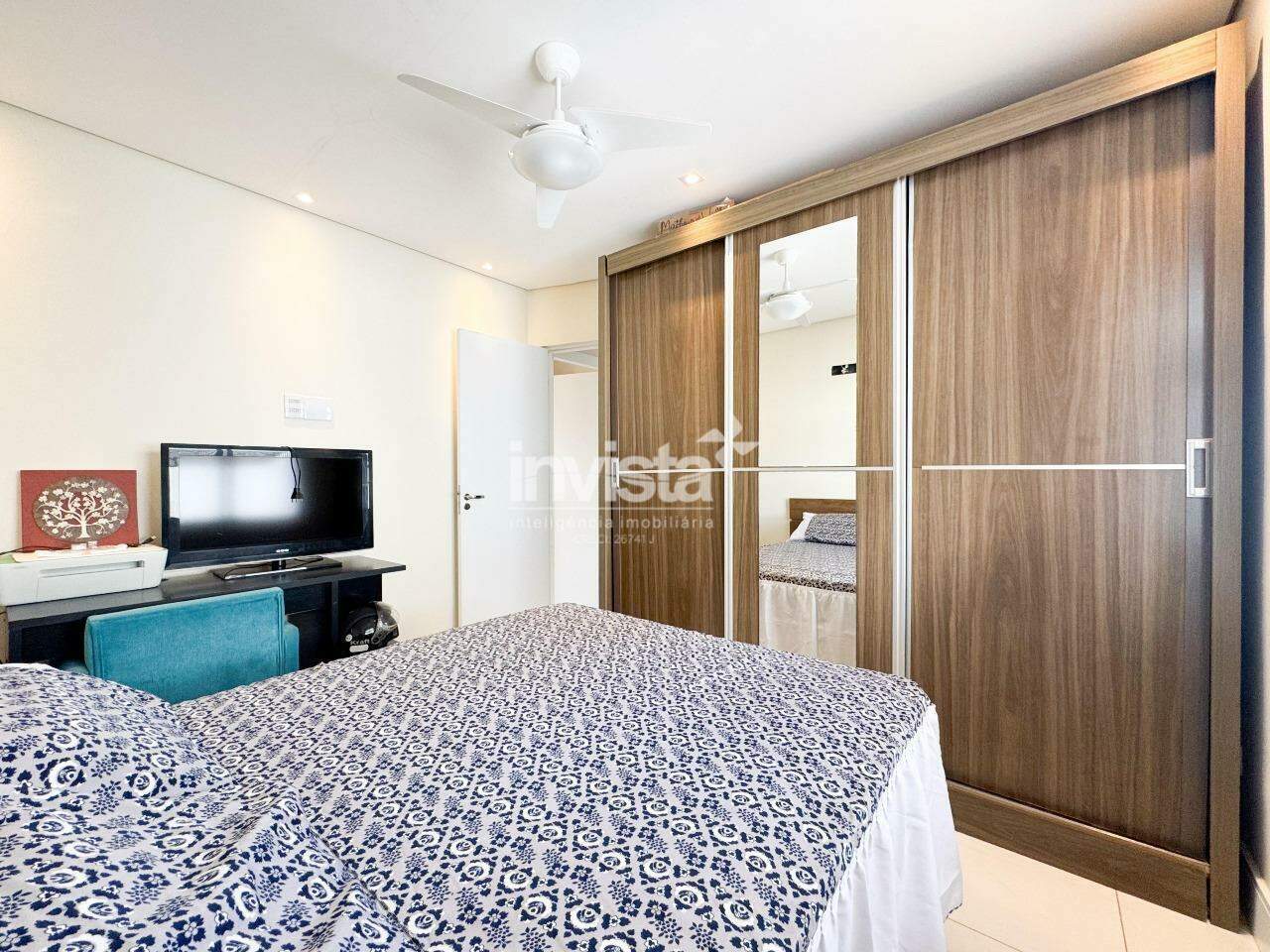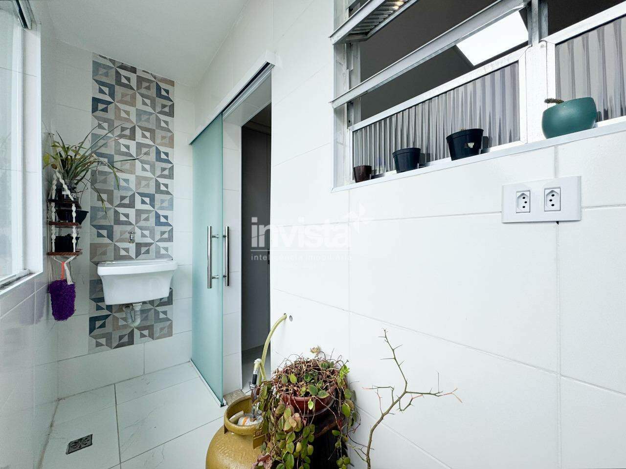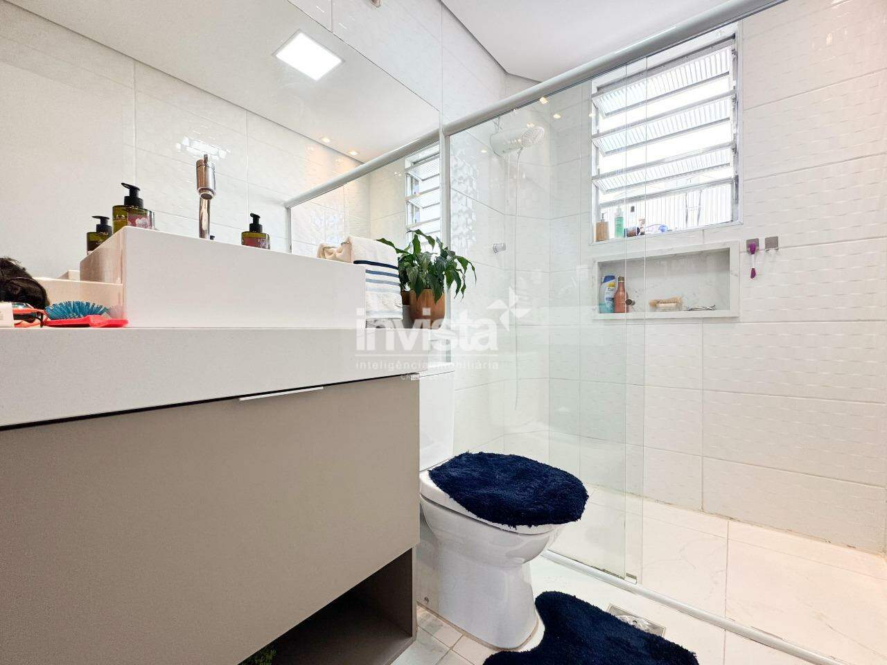 O banheiro é espaçoso, claro e agradável, com gabinete e nicho para produtos de beleza. O prédio conta com vaga coletiva, sistema de monitoramento com câmeras e portão eletrônico, e está uma quadra de distância do Embaré, de ótimos comércios, rota de fretado e fácil acesso a entrada e saída de Santos.