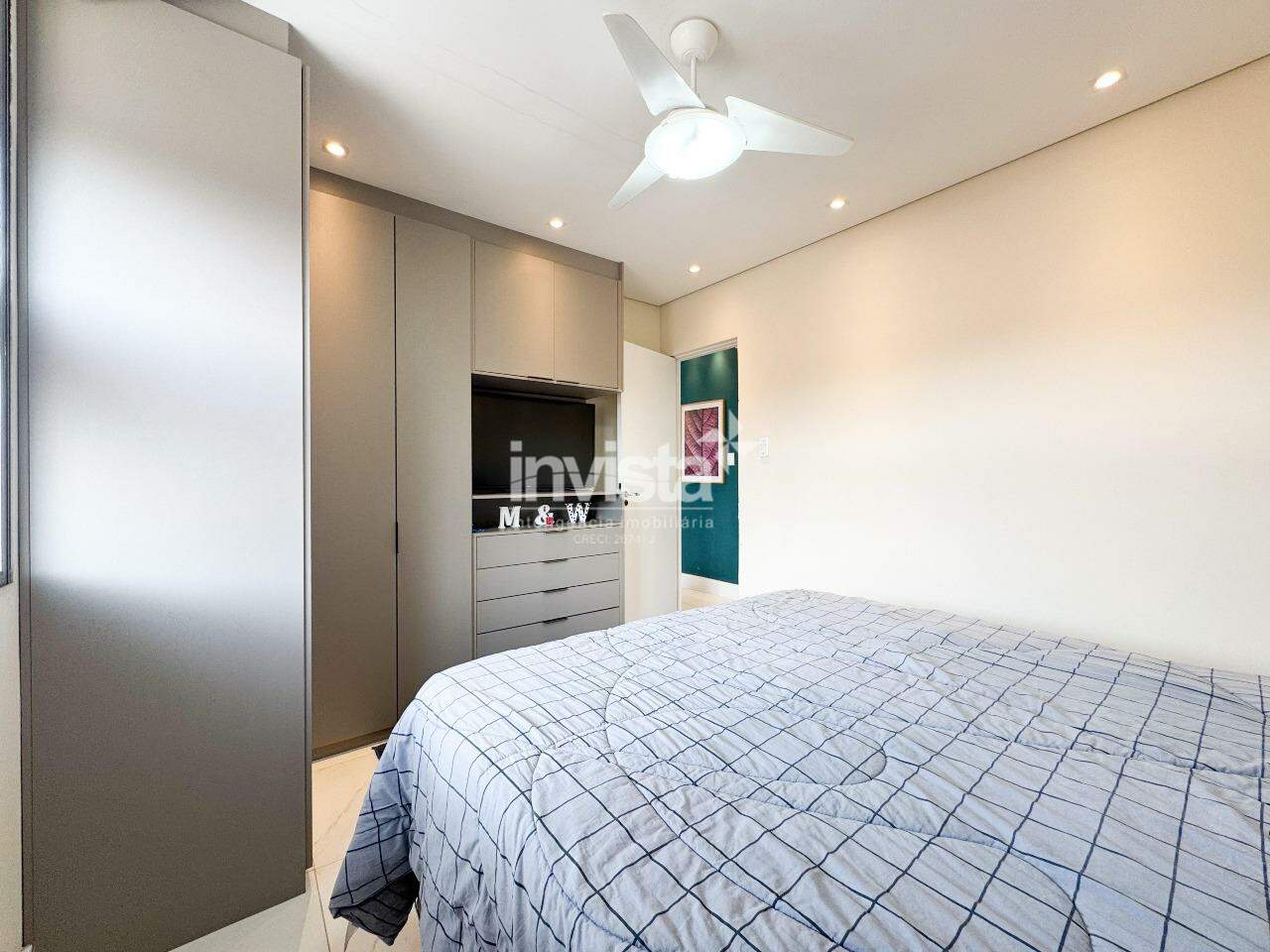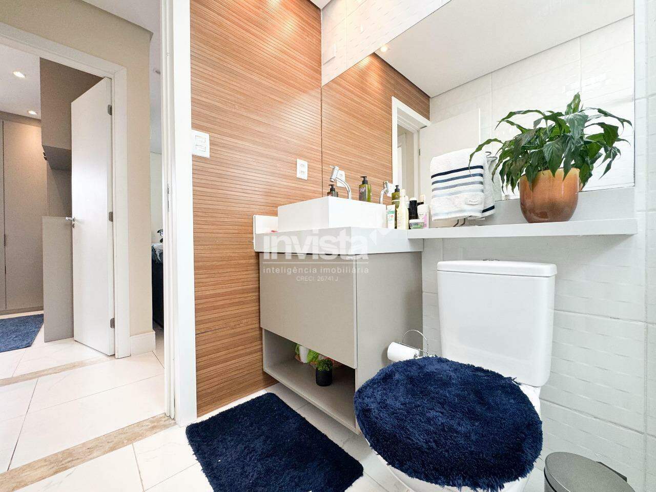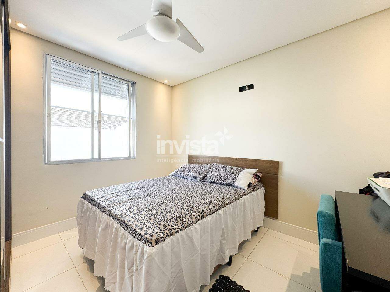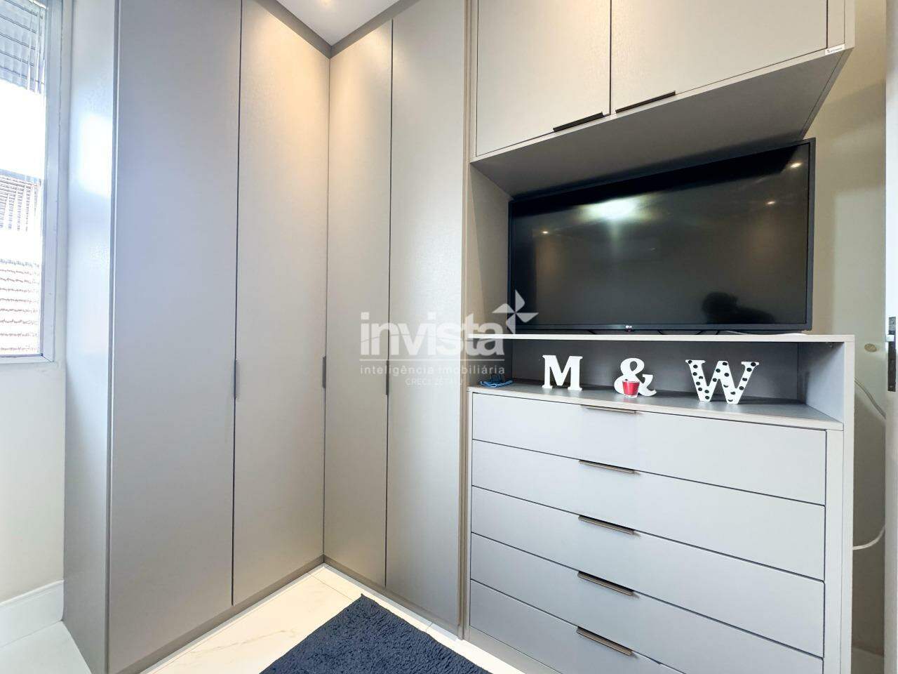 O banheiro é espaçoso, claro e agradável, com gabinete e nicho para produtos de beleza. O prédio conta com vaga coletiva, sistema de monitoramento com câmeras e portão eletrônico, e está uma quadra de distância do Embaré, de ótimos comércios, rota de fretado e fácil acesso a entrada e saída de Santos.
