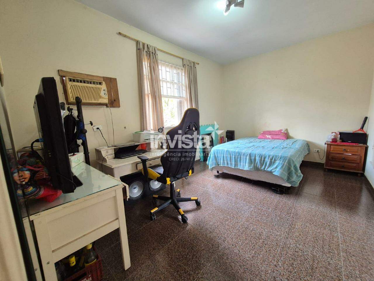 No piso superior, há 2 quartos espaçosos com armários embutidos e um banheiro social amplo, com possibilidade de criar uma suíte.