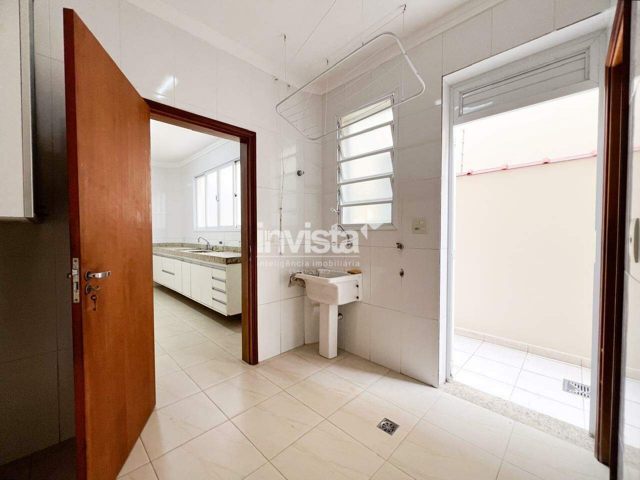 A cozinha tem boa distribuição para os armários, eletrodomésticos e mesa, com acesso à área de serviço que tem o tamanho ideal para as necessidades do dia-a-dia, com mais um banheiro social e uma despensa, e acesso a lateral da casa.