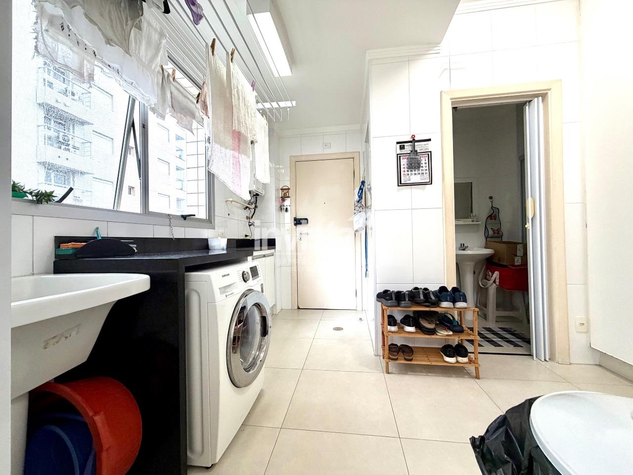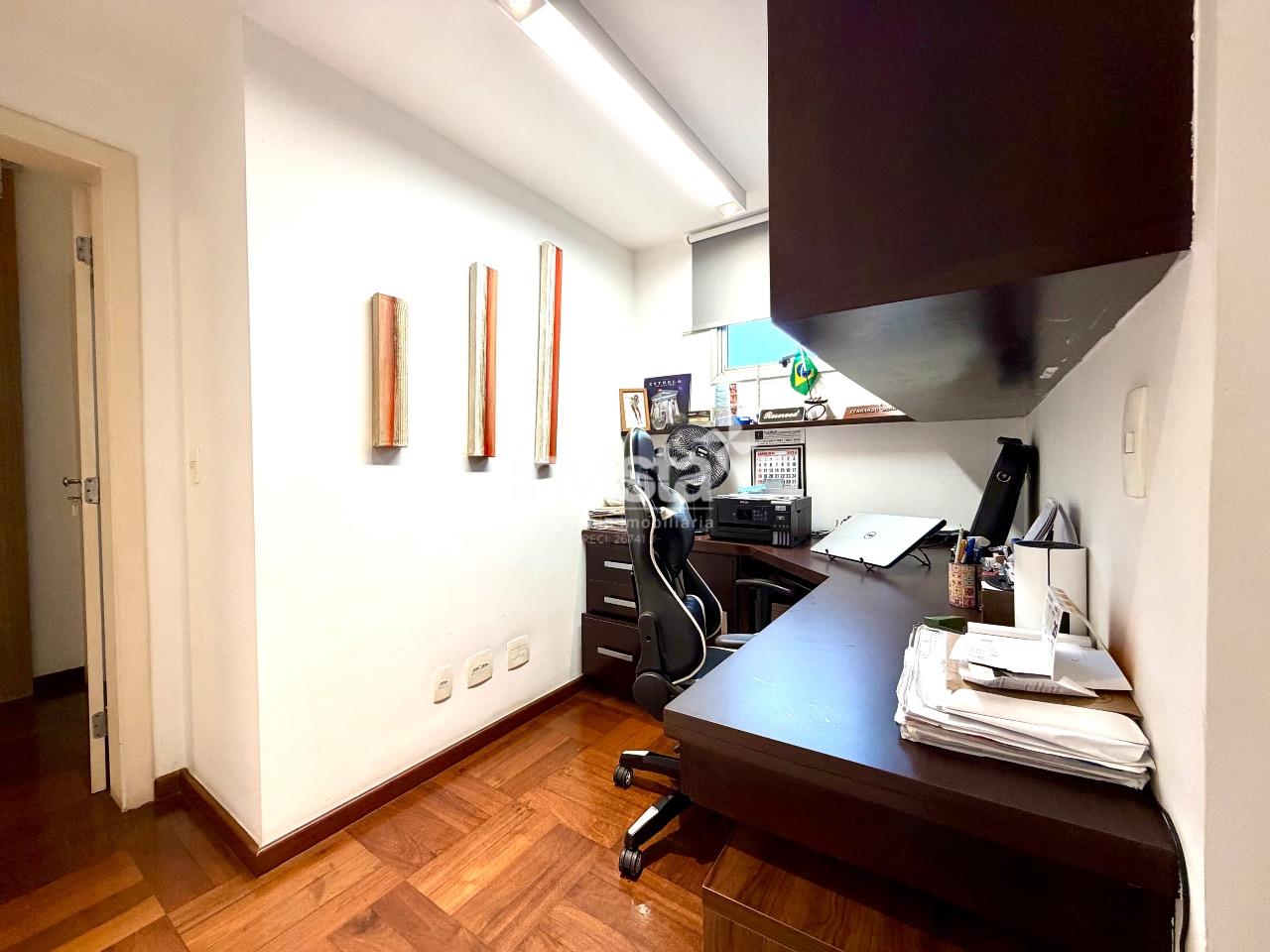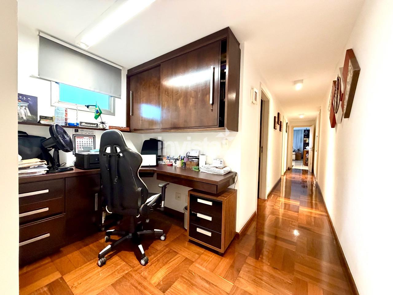 O apartamento possui três dormitórios, sendo uma suíte generosa com closet. O banheiro da suíte é um verdadeiro destaque, com banheira e ótimo espaço, trazendo conforto e funcionalidade ao dia a dia. Há ainda banheiro social bem dimensionado, lavabo e escritório.