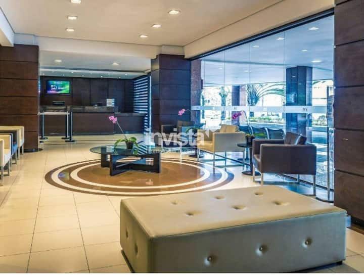 Infraestrutura completa: 3 elevadores, portaria 24h, segurança 24h, interfone, portão eletrônico e lavanderia e serviço de arrumação.
