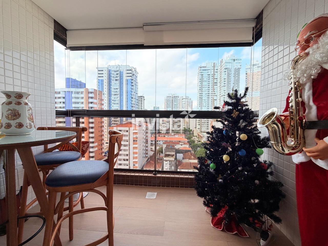 Um imóvel completo, raro no Gonzaga: metragem grande, várias varandas, vista livre, lazer e 3 vagas demarcadas — combinação difícil de encontrar.